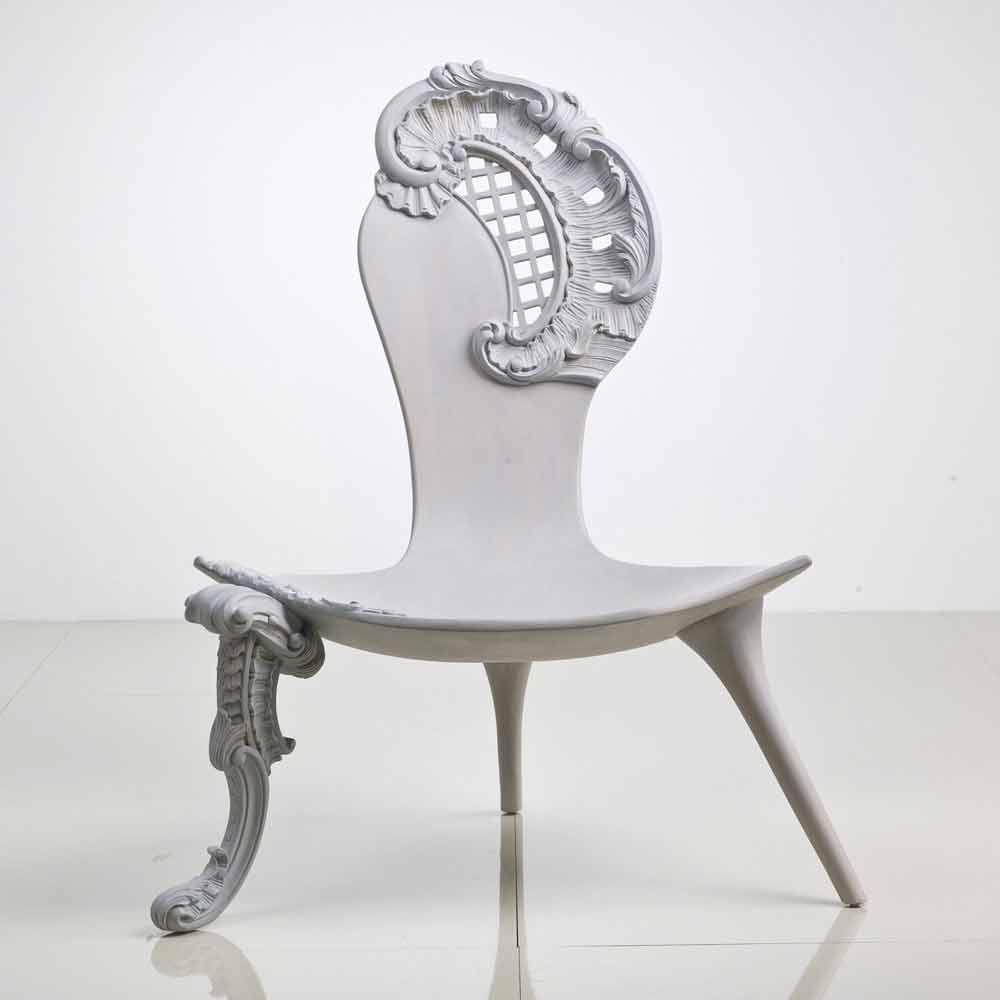 Trono tallado a mano en roble macizo, diseño gris, León León es un trono tallado a mano en madera maciza con una decoración barroca en la parte posterior y un asiento de madera maciza. Una hoja de madera lisa perfila el perfil suave en algunas de sus partes evoluciona en un trabajo barroco floreciente. Casi como si la madera lentamente le quitara la vida, en el sillón crece una especie de sombrero floral con mucho velo, mientras que la pierna se enriquece con enrollados rizos de madera. Acabado de roble gris (gris humo).