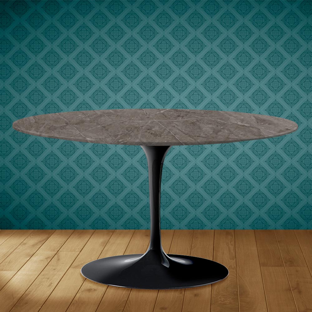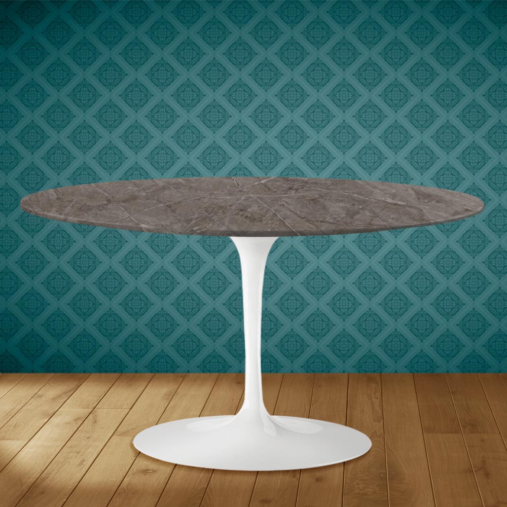 Mesita con tapa ovalada de cerámica kira efecto mármol gris pilpis mate y base de aluminio pulido íntegramente fabricada en Italia . Este complemento de decoración tiene dos características únicas: la cerámica kira y la forma ovalada. La cerámica se caracteriza por su compleja y finísima gráfica que consigue crear un ambiente cálido y acogedor en cualquier ambiente de vida en el que se coloque. Este material también es de gran calidad y tiene una resistencia considerable . La particular forma ovalada está cada vez más de moda para decorar ambientes con originalidad gracias a la línea y a su practicidad y funcionalidad.