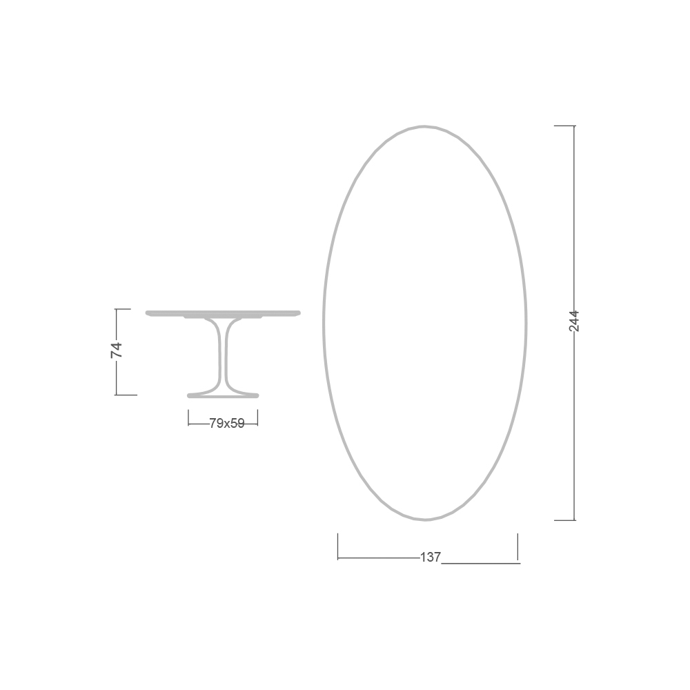 Tablero: 244 x 137 / Base oval: 79 x 59 cm x H 73 cm