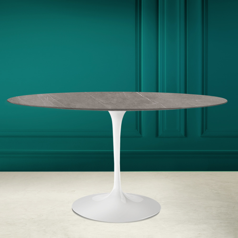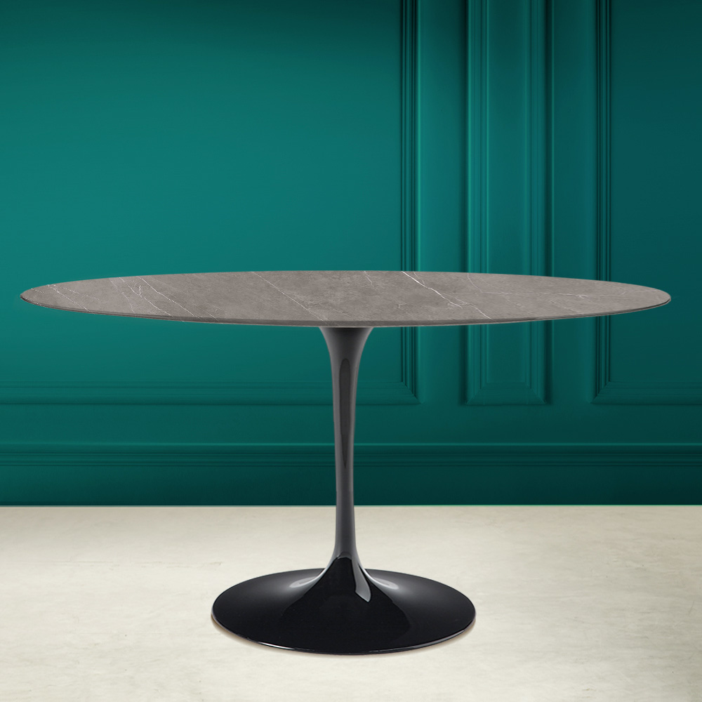 Mesa de comedor con tapa ovalada en cerámica de piedra gris Made in Italy