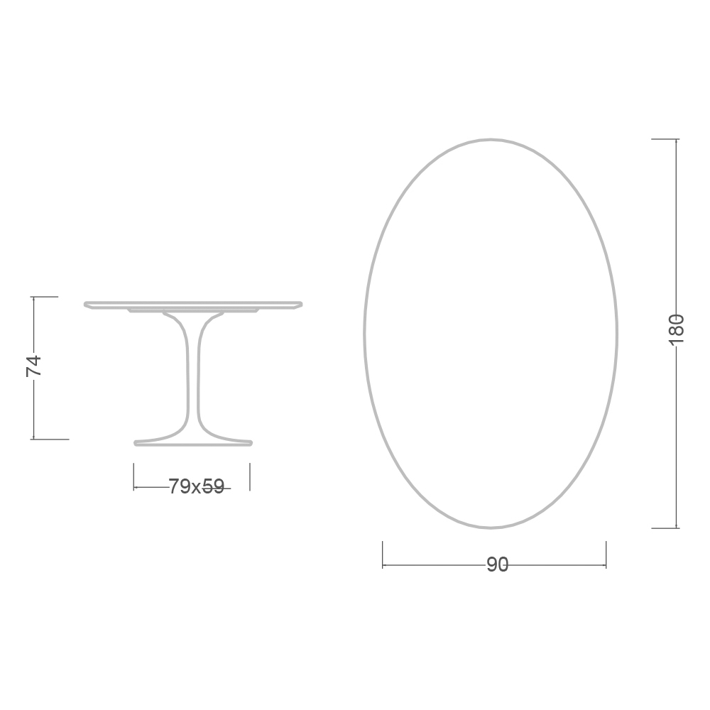 Tablero de mesa: 180 x 105 / Base ovalada: 79 x 59 cm x H 73 cm