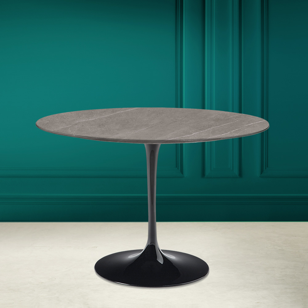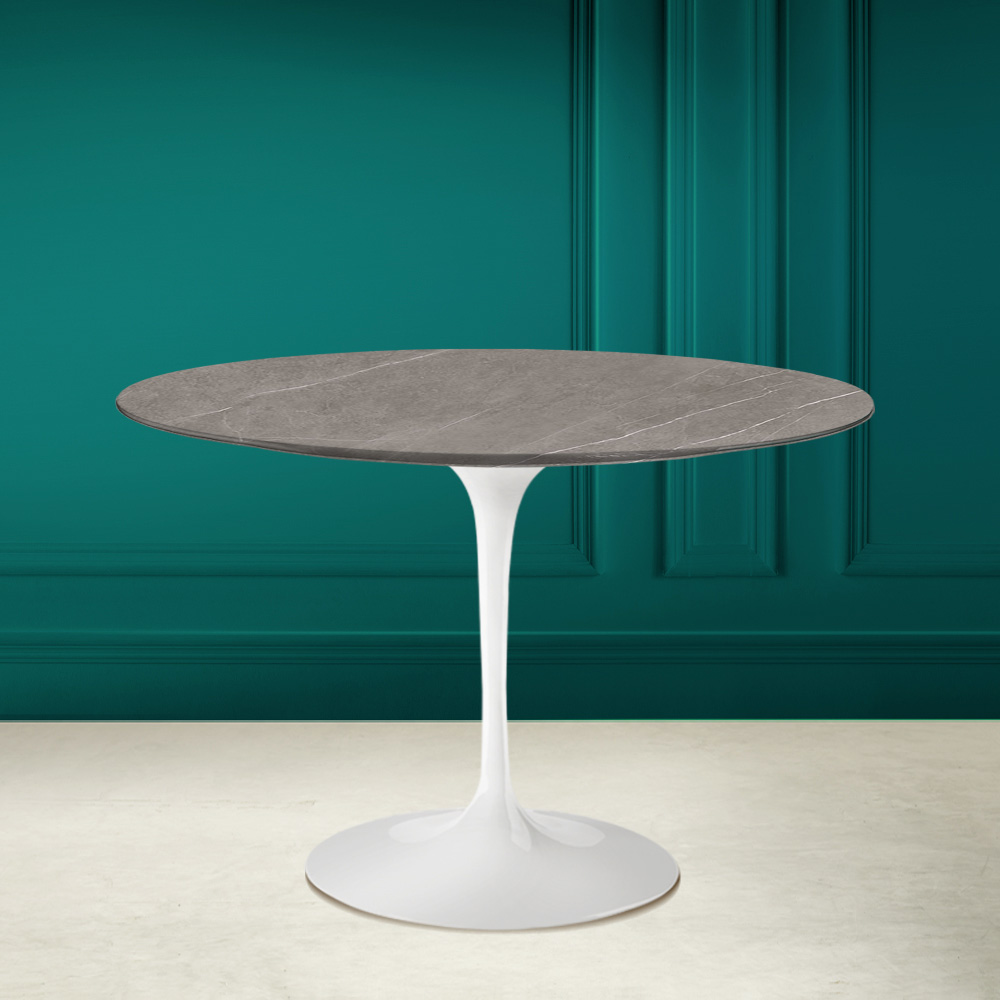 Mesa de comedor con tapa redonda en cerámica de piedra gris Made in Italy