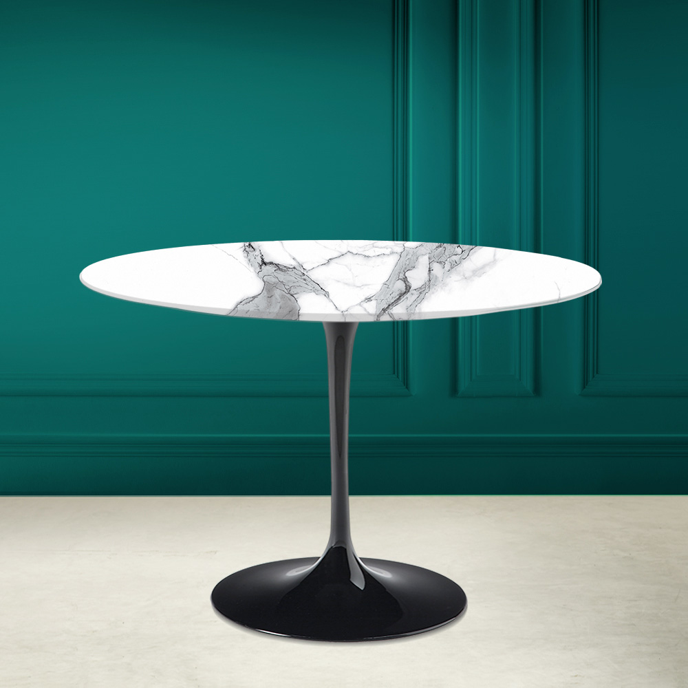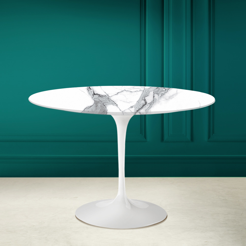 Mesa de comedor con tapa redonda en cerámica estatuaria muy alta Made in Italy