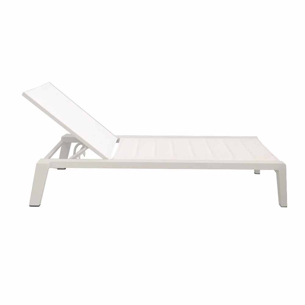 Esta tumbona se caracteriza por un diseño simple, lineal y elegante. Cuenta con una estructura de aluminio recubrimiento de polvo con la tela Textilene. El respaldo reclinable garantiza el máximo confort.