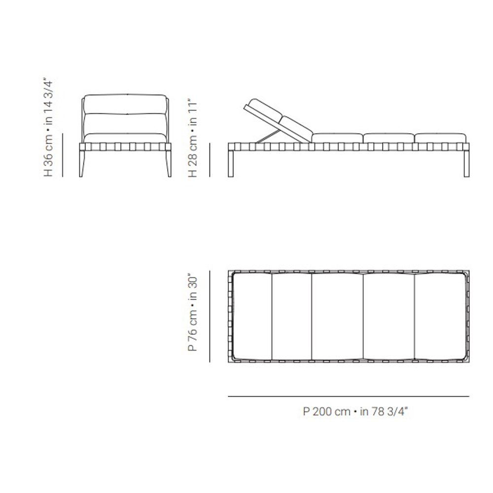 • Largo 200 x Profundidad 76 x Alto 36 cm