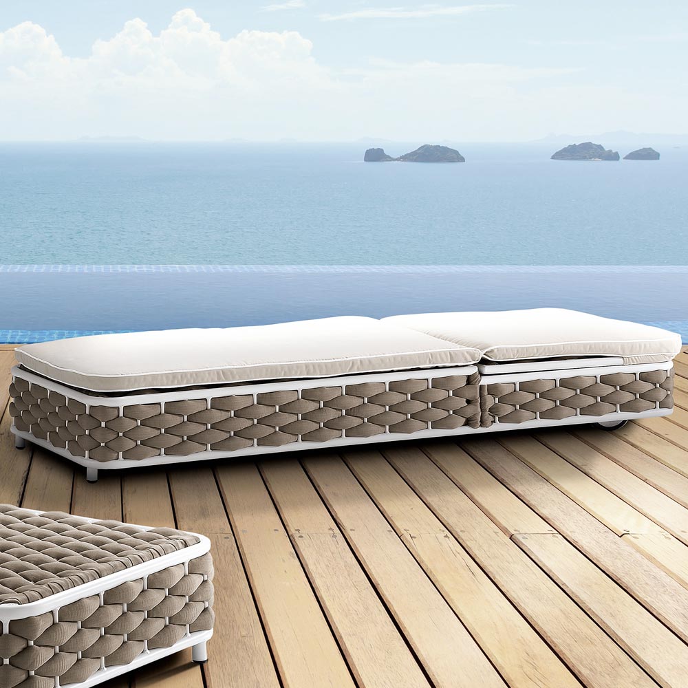 La estructura de esta tumbona es maniobrable y robusta pero al mismo tiempo mantiene un diseño limpio. Su estilo moderno le confiere un fuerte carácter y es perfecta para amueblar espacios exteriores tanto en el ámbito privado como en el contract.