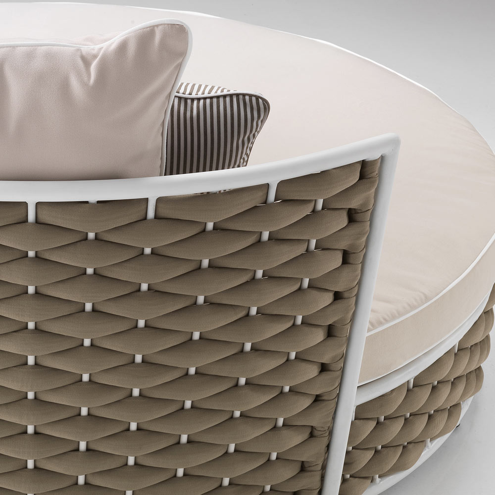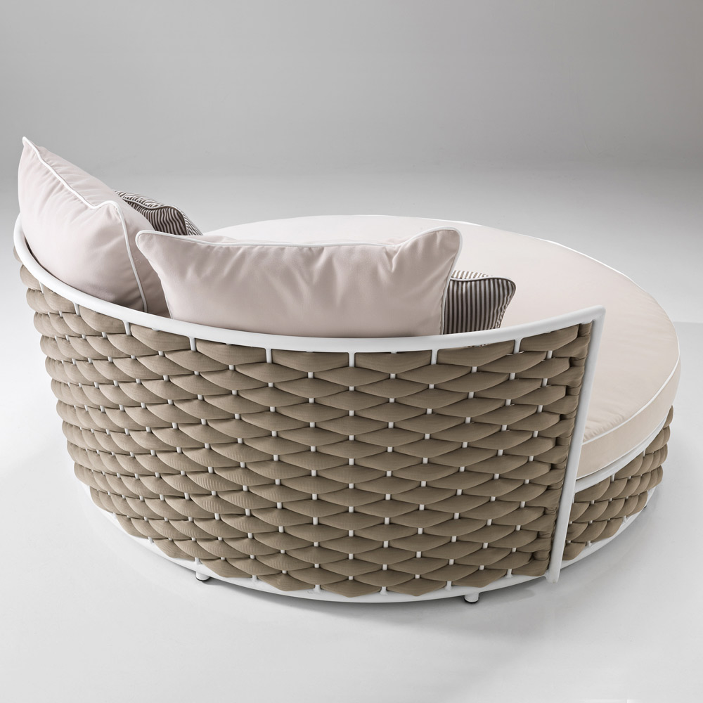 La estructura de este daybed es fácil de manejar y resistente pero al mismo tiempo mantiene un diseño limpio. Su estilo moderno le confiere un fuerte carácter haciéndolo perfecto para amueblar espacios exteriores tanto en entornos privados como contract.
