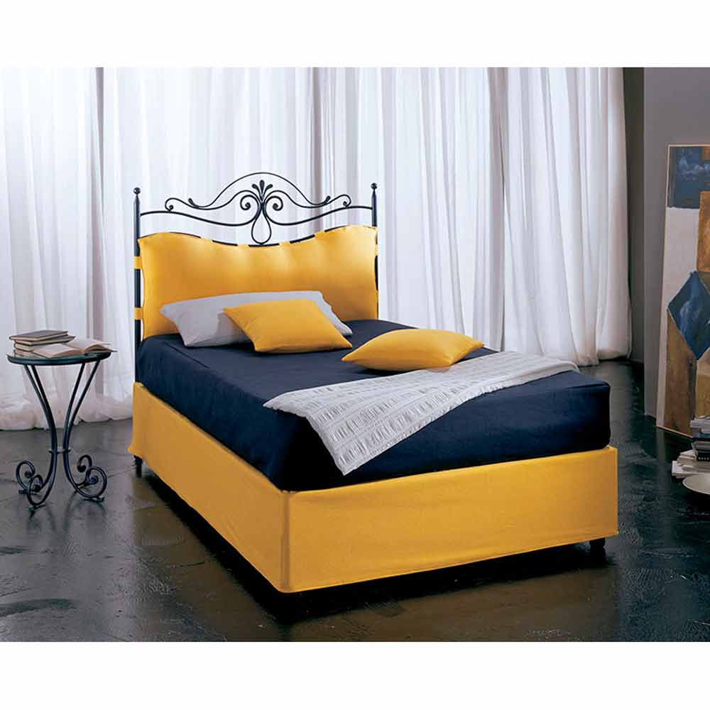 La cama de hierro forjado en la variante CM. 120 CABEZA Y CONTENEDOR con estribo incluye la base de rejilla que puede 'acomodar un colchón de 120 X 195 cm. La red que tenemos un sistema particular de colchón firme que le permite montar también un colchón cm de largo. 190. Si hay algún necesidades especiales relacionadas con la estética, este modelo, gracias a nuestro artesano la productividad se puede cambiar de altura. El contenedor está hecha de metal y se puede pintar con cualquier color. Tener la carcasa metálica ofrece ventajas significativas a nuestra cama incluyendo robustez, facilidad de limpieza, y una mayor capacidad. El recipiente es en cada caso combinado con un textil cenefa. Esta versión con estribo, por ejemplo, sólo es posible gracias a la estructura metálica del contenedor, a juego muy bienvenido, ya que le permite combinar el clasicismo de una cama de matrimonio con la conveniencia de explotar el espacio de almacenamiento.