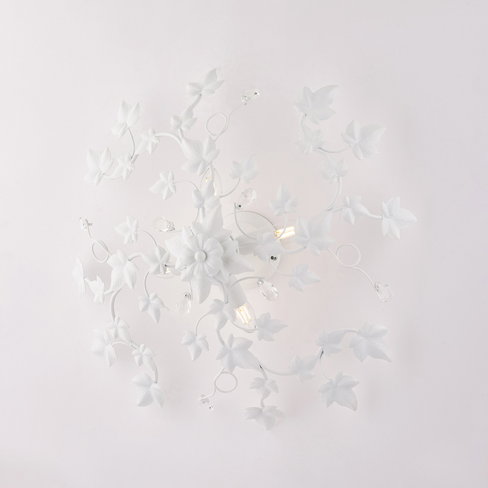 Los materiales seleccionados —hierro y cristal— aportan un efecto elegante y una agradable iluminación. Fabricada íntegramente en Italia, es sinónimo de artesanía de calidad y atención al detalle.