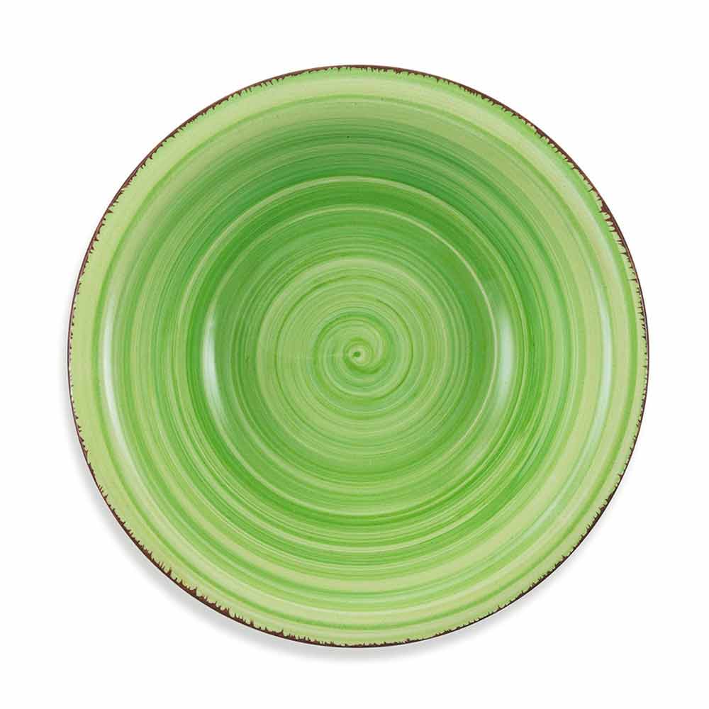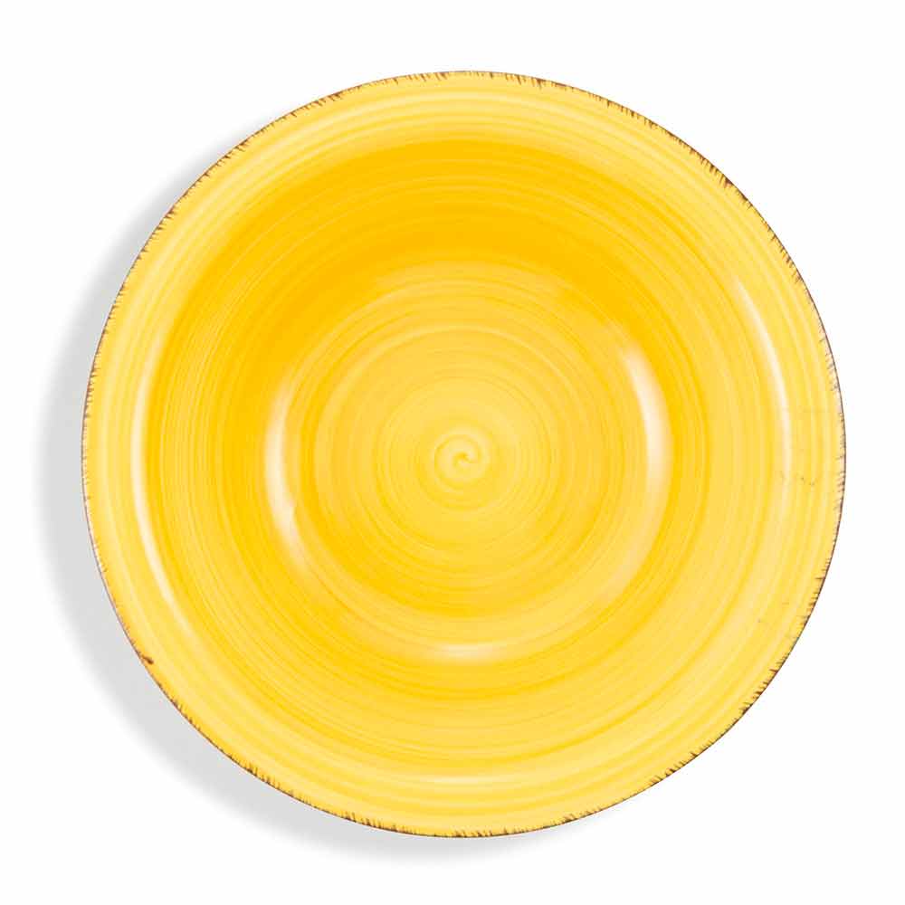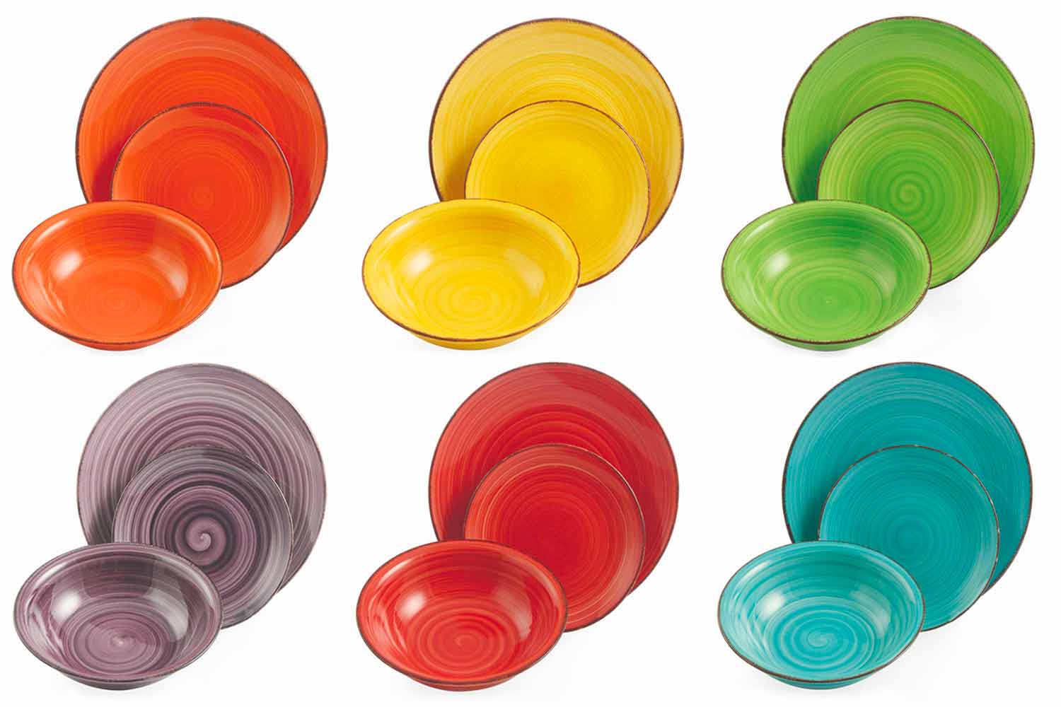 El plato hondo, de hecho, solo usa en su superficie inferior los mismos colores que el plato plano y el plato de fruta.