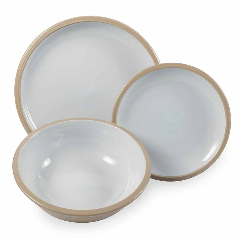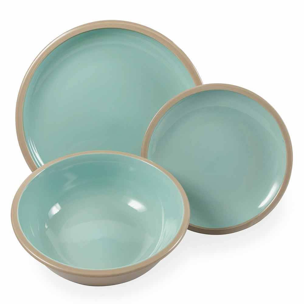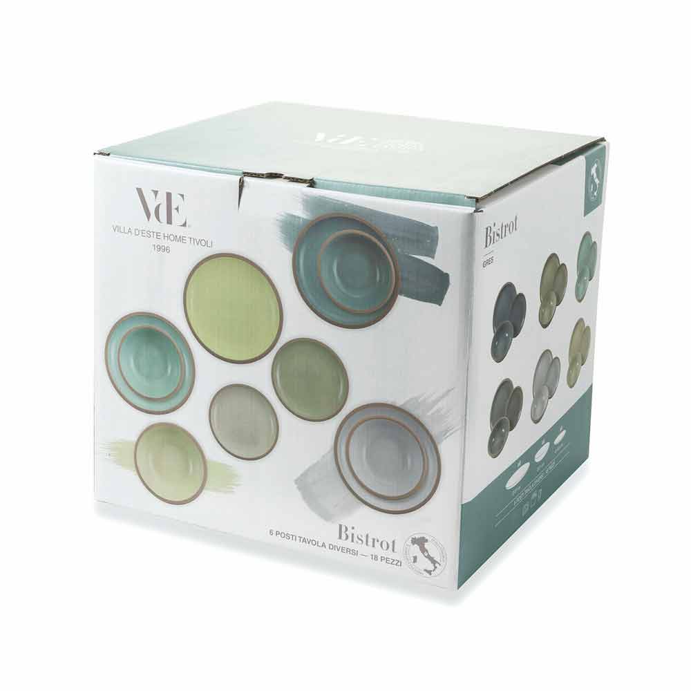 Platos de vajilla de color en gres con 18 piezas de diseño.
