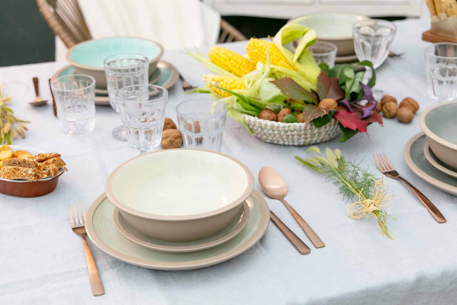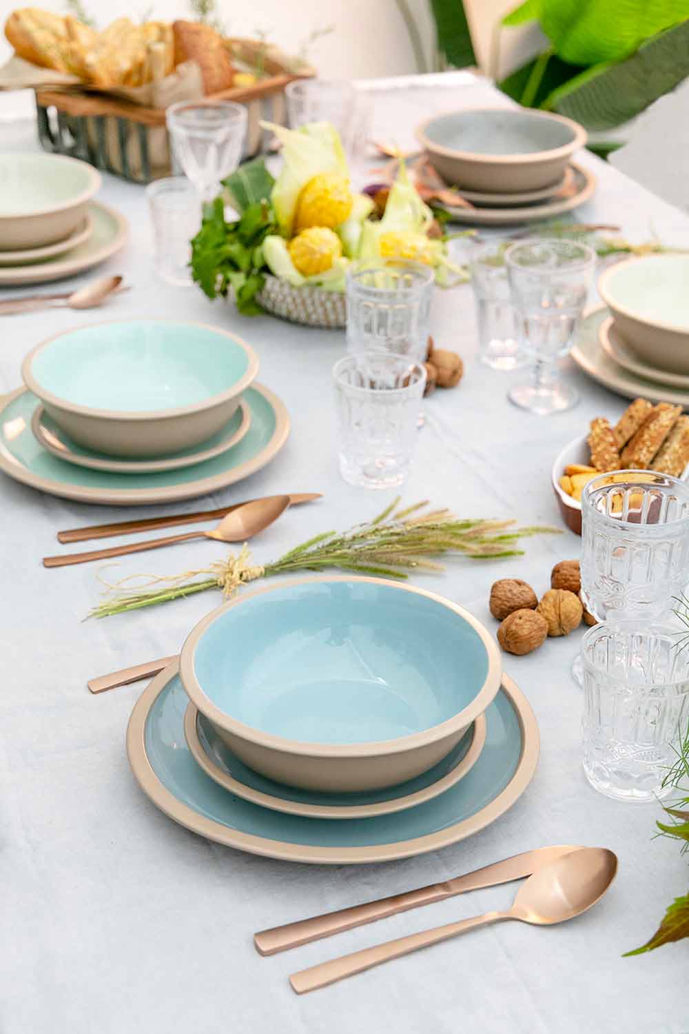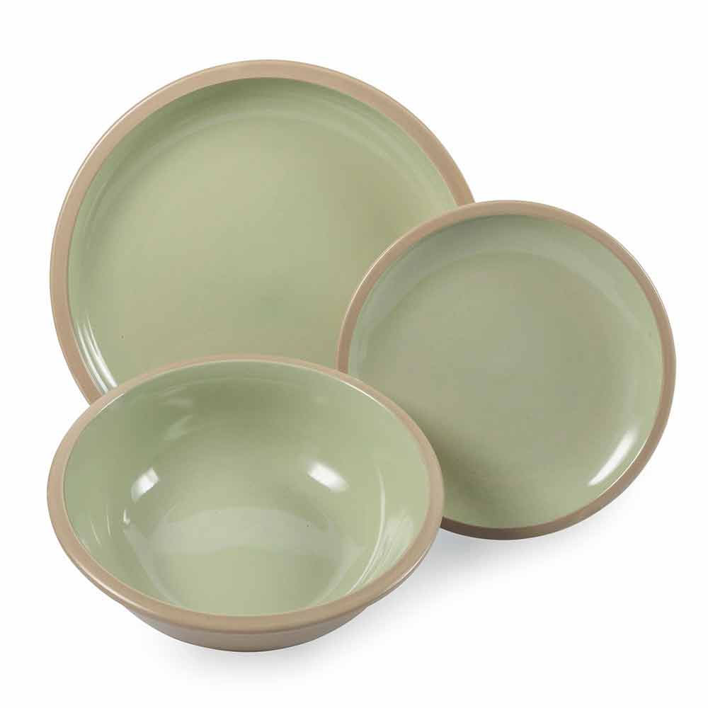 Platos de vajilla de color en gres con 18 piezas de diseño.