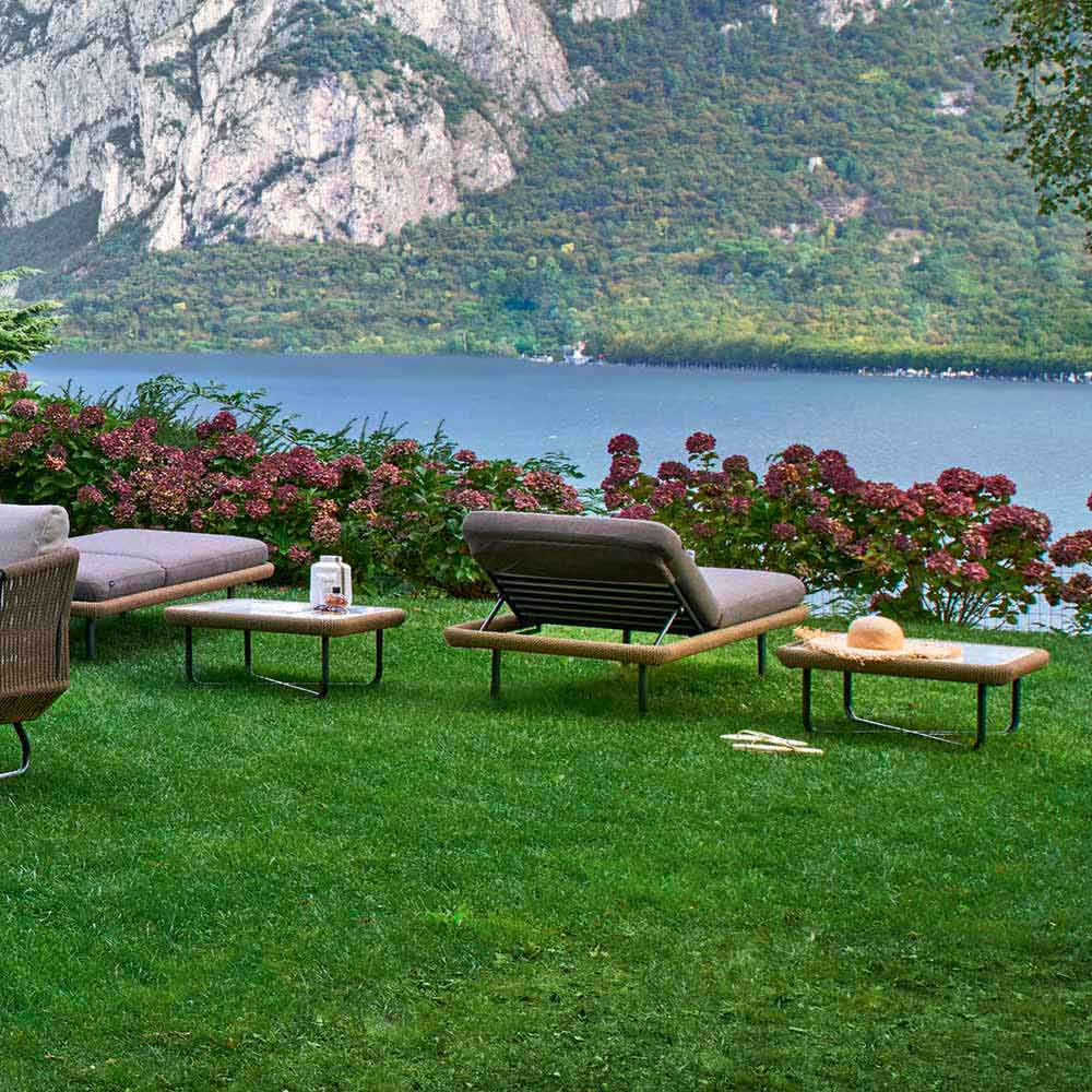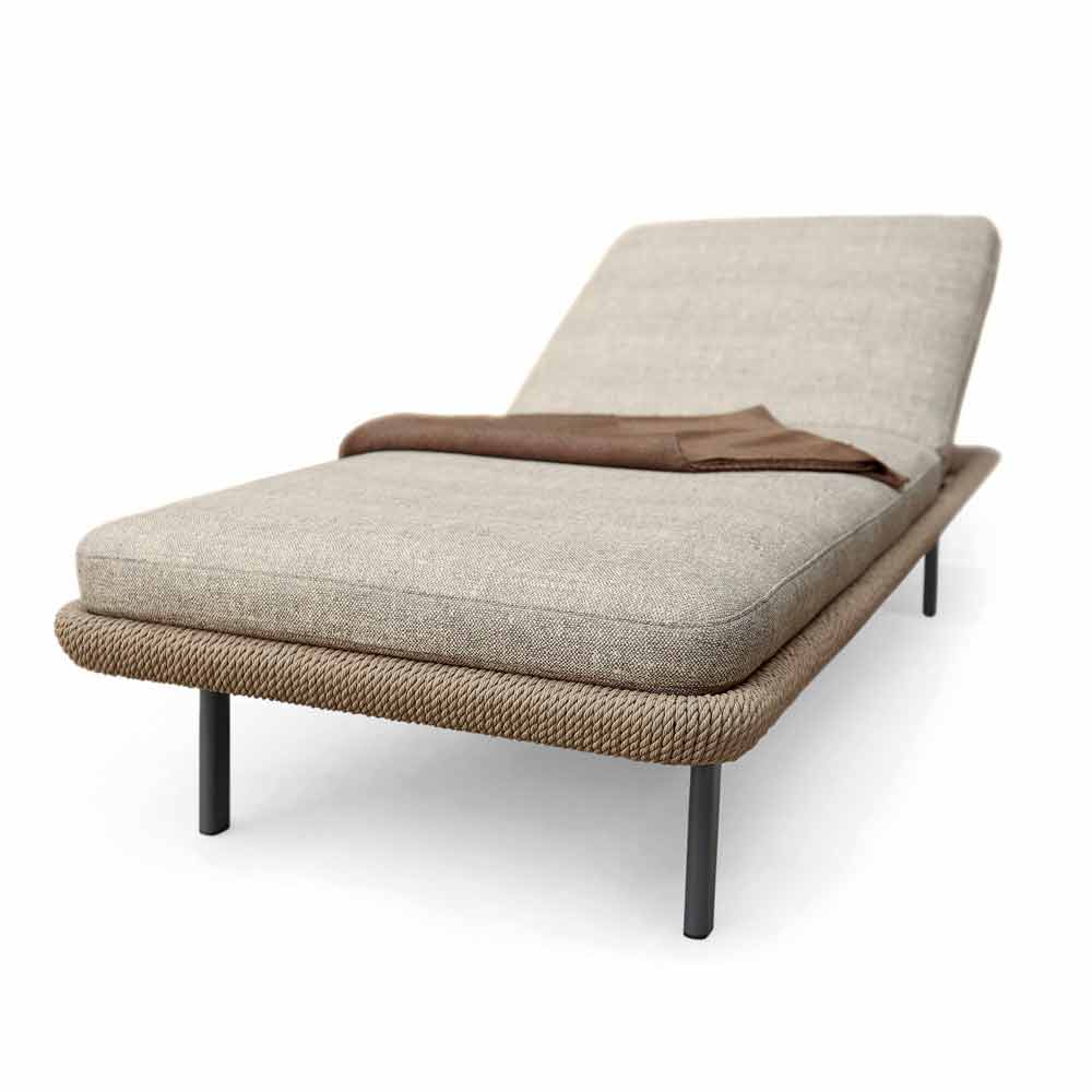 Varaschin Babylon jardín o cama interior, diseño moderno Babylon es una colección de asientos compuesta de un sofá, un sillón, una cama y un puf. Todos los artículos de esta colección son modelosregistrados y cuentan con una estructura de aluminio pintado y cuerda de fibra sintética. Esta tumbona para exteriores, gracias a su diseño versátil, también se puede usar para ambientes interiores. Los cojines son extraíbles.