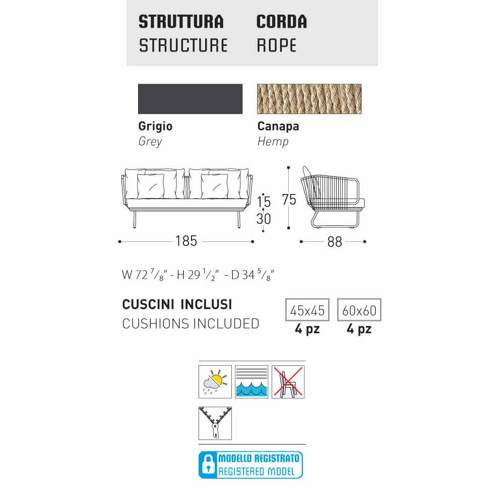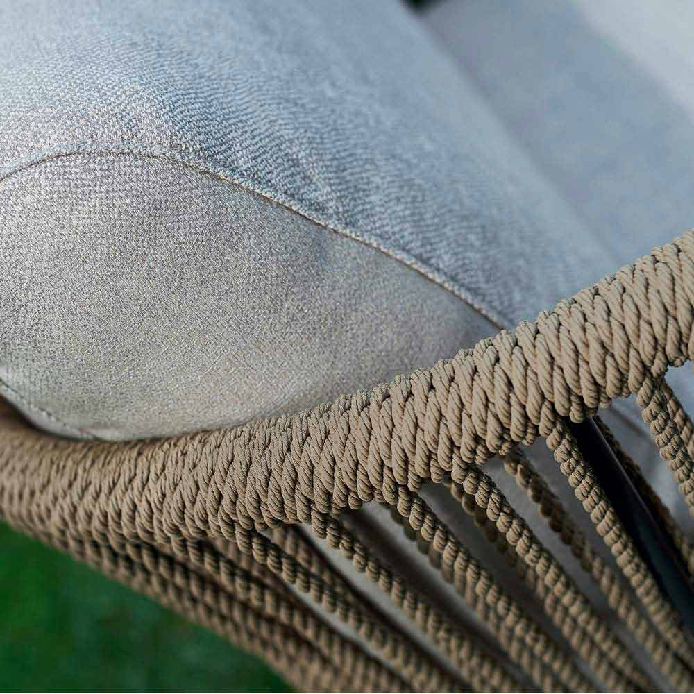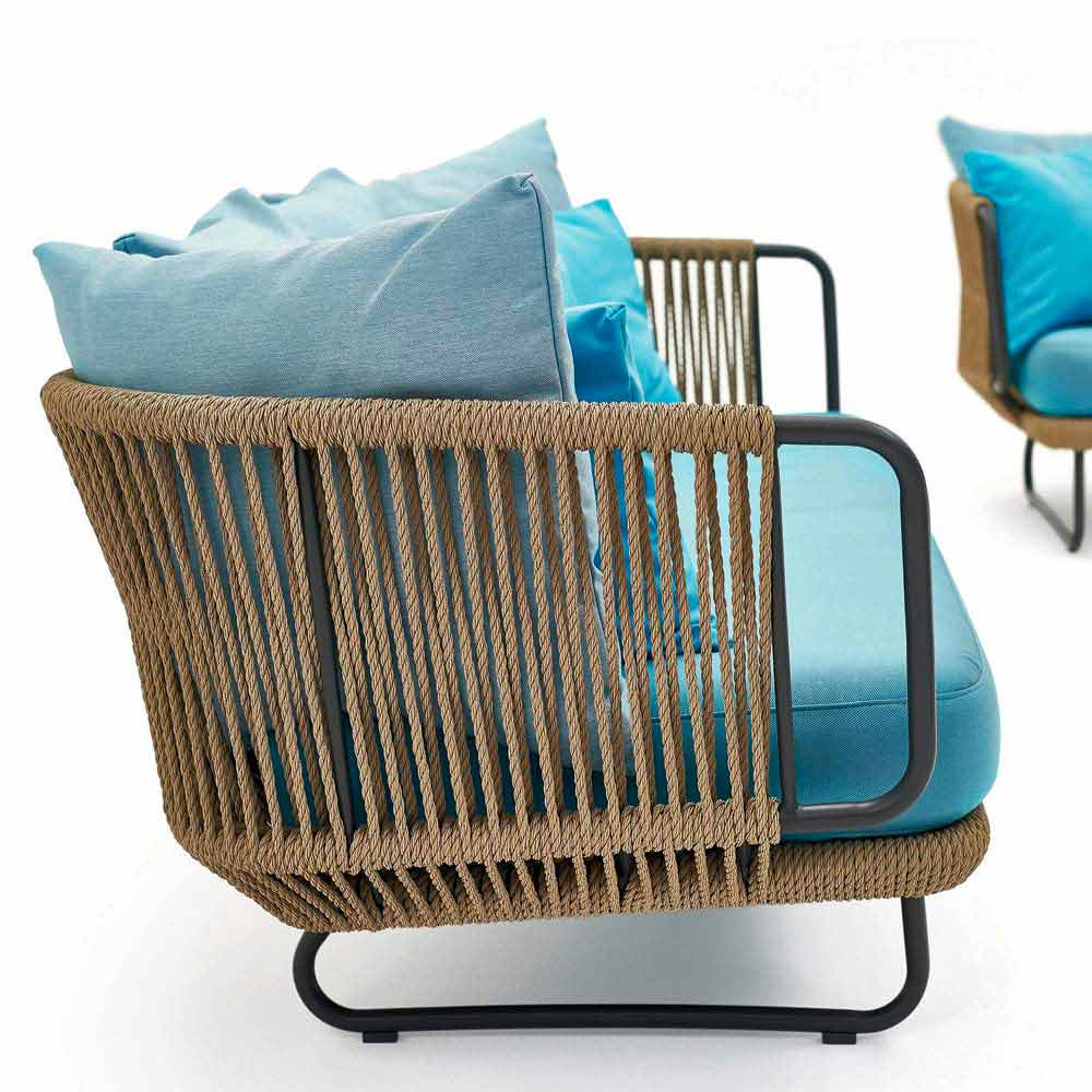 Babylon es una colección de asientos compuestos por sofás, sillones, camas y otomanas. Todos los artículos de esta colección son modelos registrados y cuentan con una estructura de aluminio pintado y cuerda de fibra sintética. El sofá Babylon de dos plazas de Varaschin se puede utilizar tanto para amueblar ambientes al aire libre como terrazas, piscinas, jardines, pero encuentra una ubicación perfecta incluso dentro, en la sala de estar.