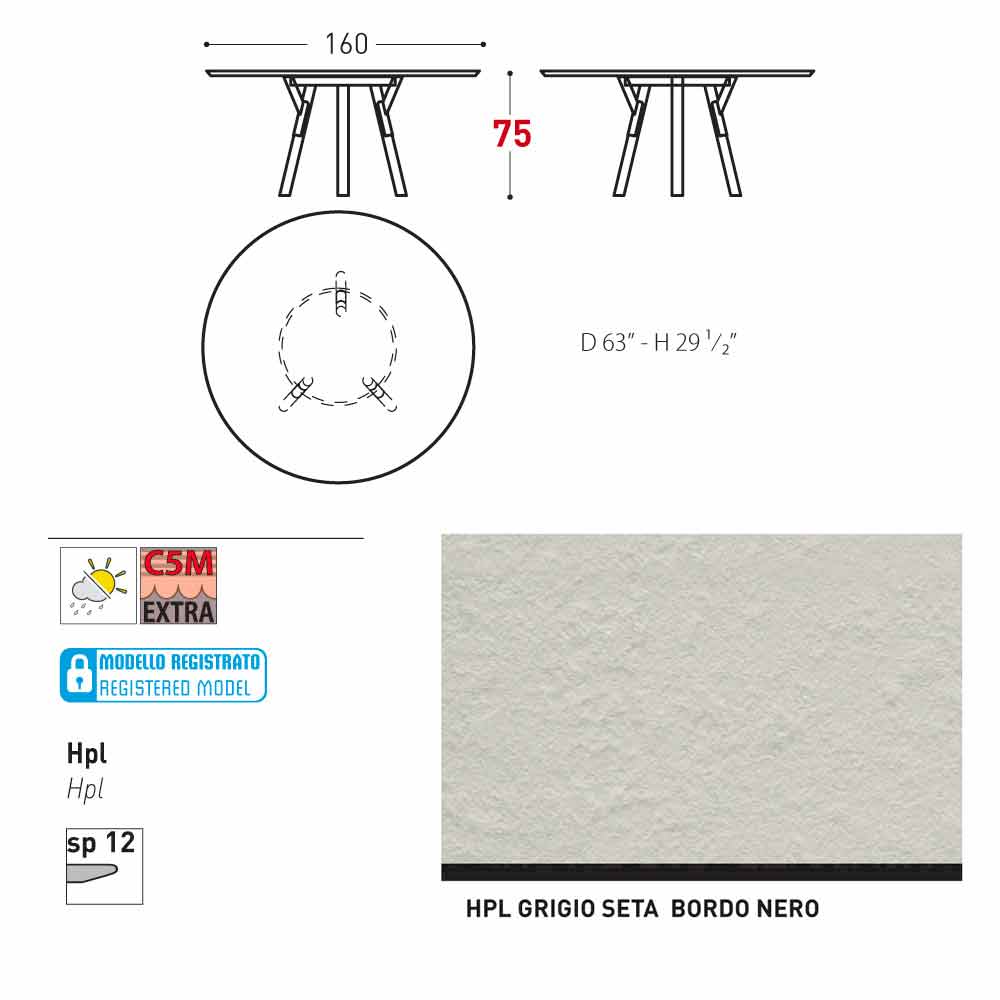 Características: HPL laminados de alta presión. Se componen de varias capas de papel (70%) impregnado con resinas termoendurecibles (30%), y se compacta a través de la acción combinada del calor (alrededor de 150 grados) y alta presión (superior a 7 MPa) durante aproximadamente 45-50 minutos. El resultado es una densidad estable, no reactivo, no poroso y de alta, con características físicas y químicas de alta resistencia mecánica (controlado excursión térmica 80; -40 grados, en tiempo limitado de menos de 30 segundos a temperaturas extremas), la exposición a la luz y la exposición a los cambios de temperatura, incluso en ambientes marinos.