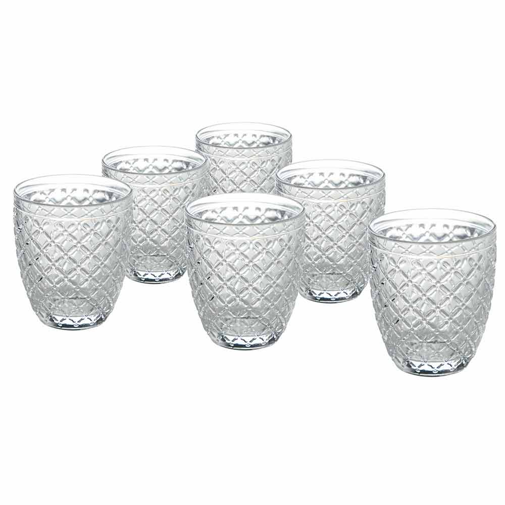 Juego de vasos de agua transparentes de colores en vidrio con adornos tallados, 12 piezas.