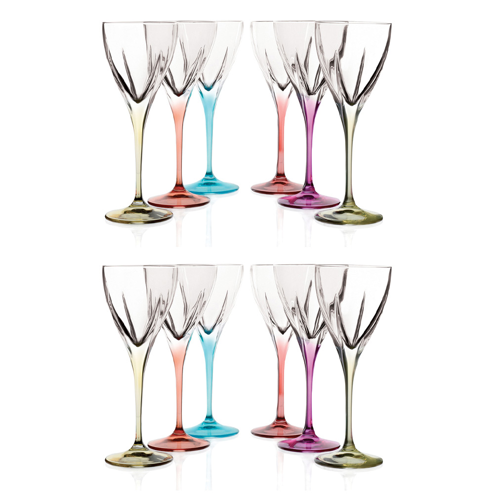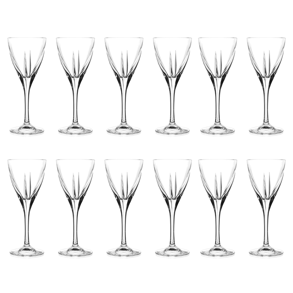 Juego de vasos de licor en cristal ecológico transparente o coloreado, 12 piezas fabricadas en Italia.
