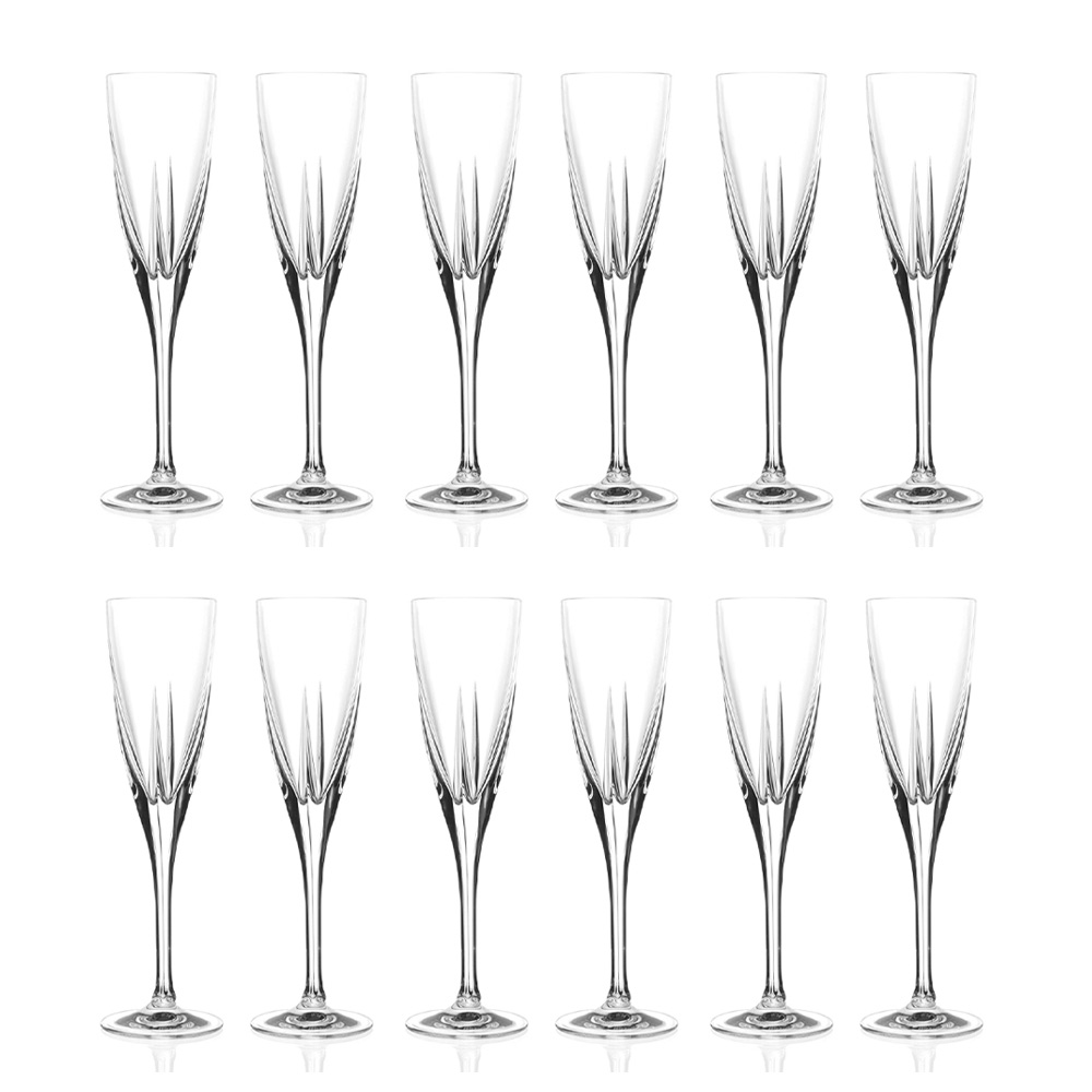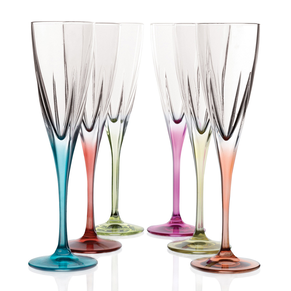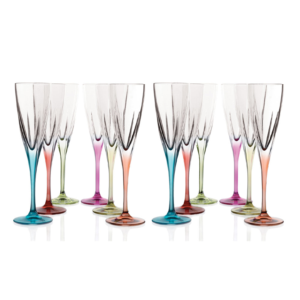 Juego de vasos flauta en cristal ecológico transparente o coloreado, 12 piezas fabricadas en Italia.