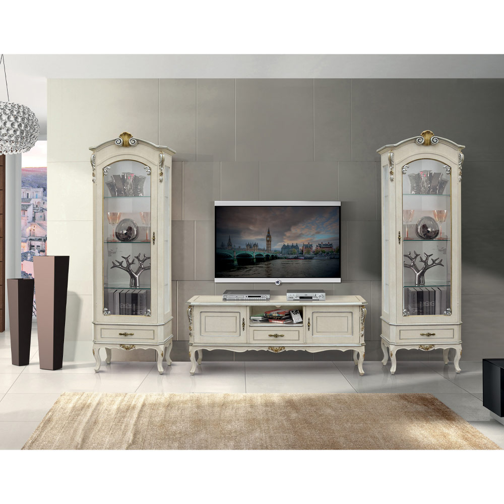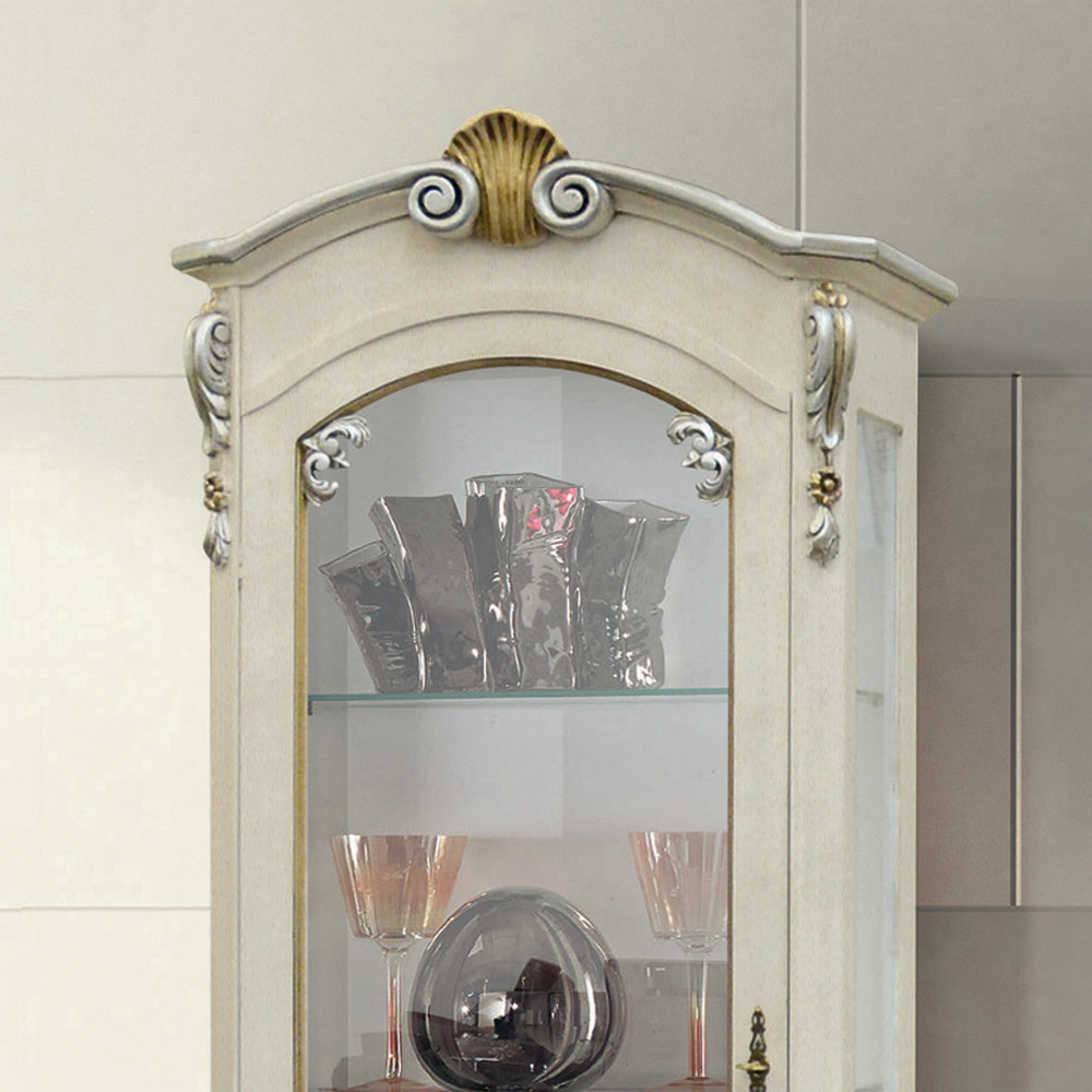 Vitrina de salón de lujo de estilo clásico realizada en preciosa madera blanca con puerta y práctico cajón, disponible en la versión con puerta que abre hacia la derecha o hacia la izquierda, adaptable a cualquier necesidad de decoración. Elegante y atemporal, esta vitrina de estilo clásico es ideal para crear ambientes impactantes. Totalmente fabricado en Italia y hecho a mano por expertos maestros artesanos , acabado con sabiduría y gusto por la elegancia. La producción se lleva a cabo utilizando materiales nobles y realizando el trabajoamano con el máximo cuidado y profesionalismo que distingue a los productos Made in Italy .