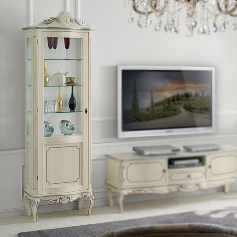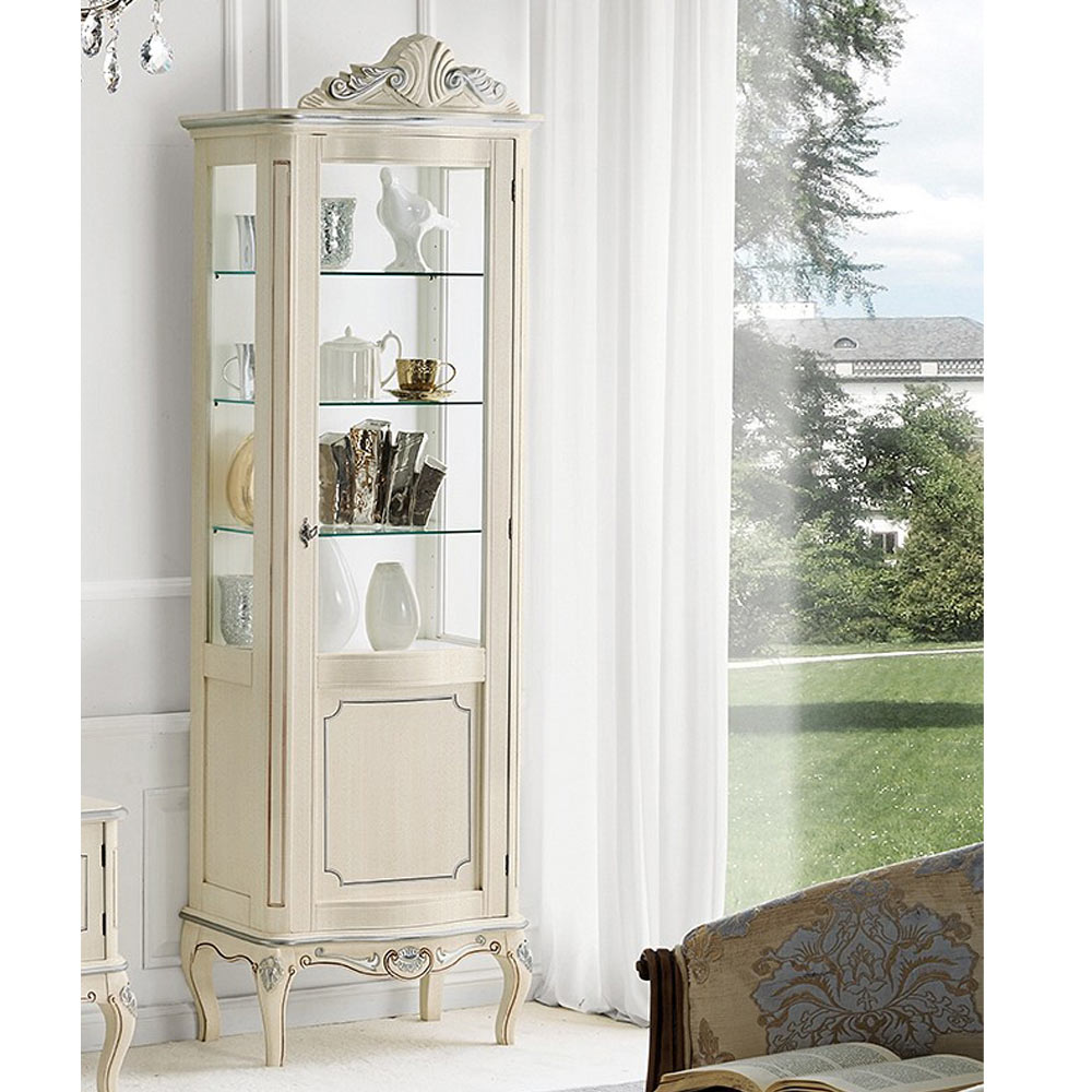 Vitrina de salón realizada en madera preciosa disponible en los acabados nogal bassano, blanco o moca y en la versión con apertura de puerta a la derecha o a la izquierda. Elegante y atemporal, esta vitrina de estilo clásico es ideal para crear ambientes impactantes. Totalmente fabricado en Italia y hecho a mano por expertos maestros artesanos , acabado con sabiduría y gusto por la elegancia. La producción se lleva a cabo utilizando materiales nobles y realizando el trabajoamano con el máximo cuidado y profesionalismo que distingue a los productos Made in Italy .