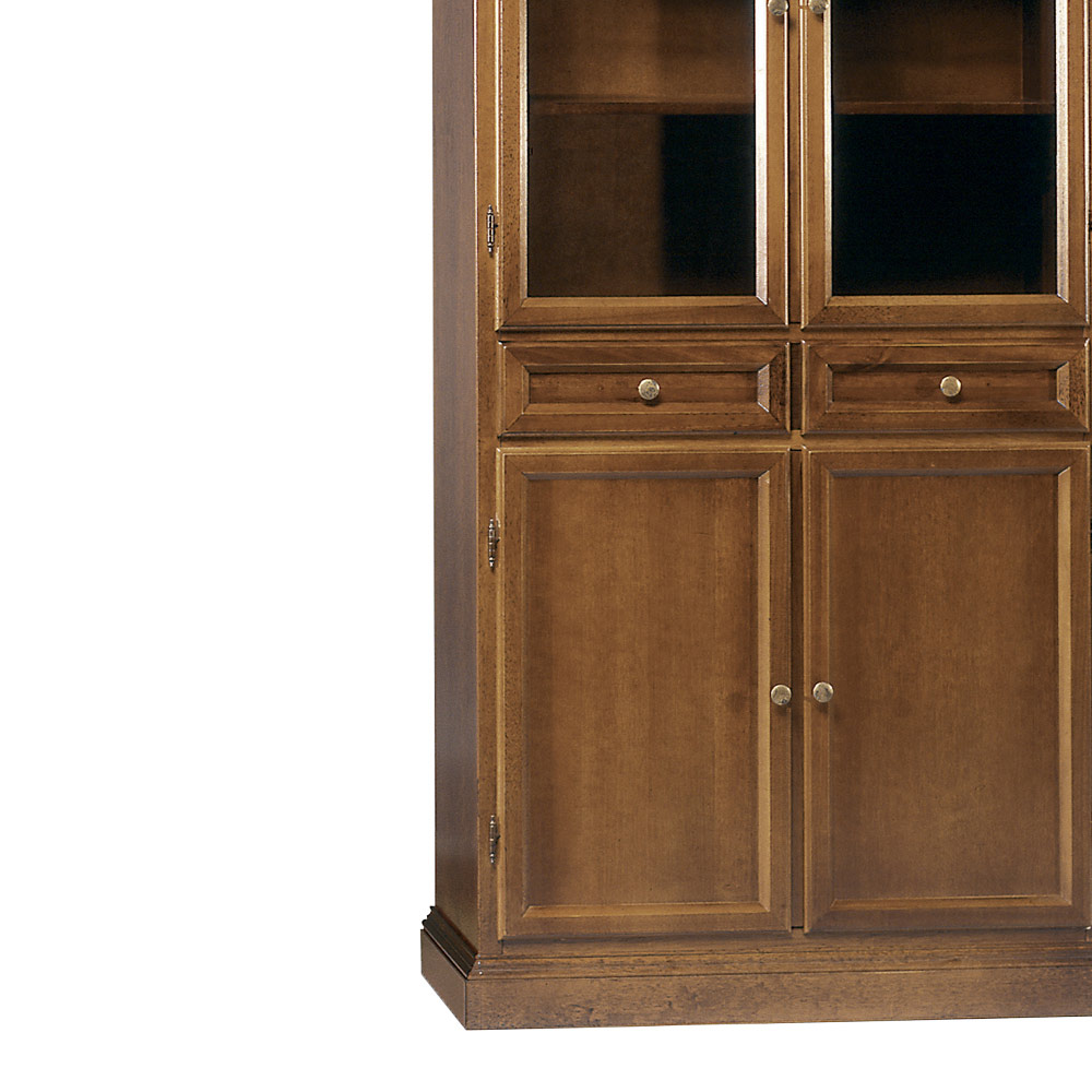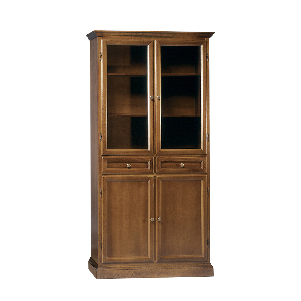 Vitrina con estructura de madera/partículas chapadas en Tanganica/toulipier/ayous , marcos en toulipier/ayous , fondos de contrachapado de álamo y/o MDF con 2 puertas de cristal, 2 puertas de madera y 2 cajones totalmente Made in Italy.