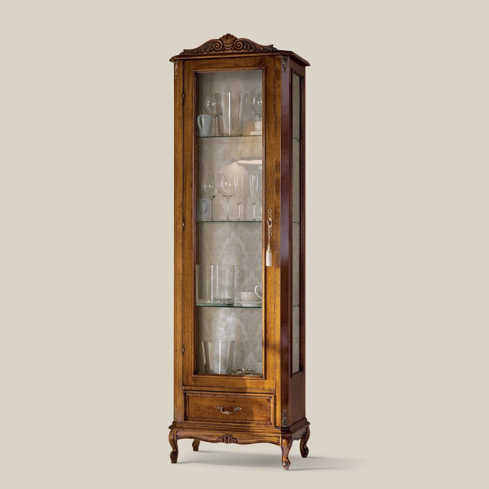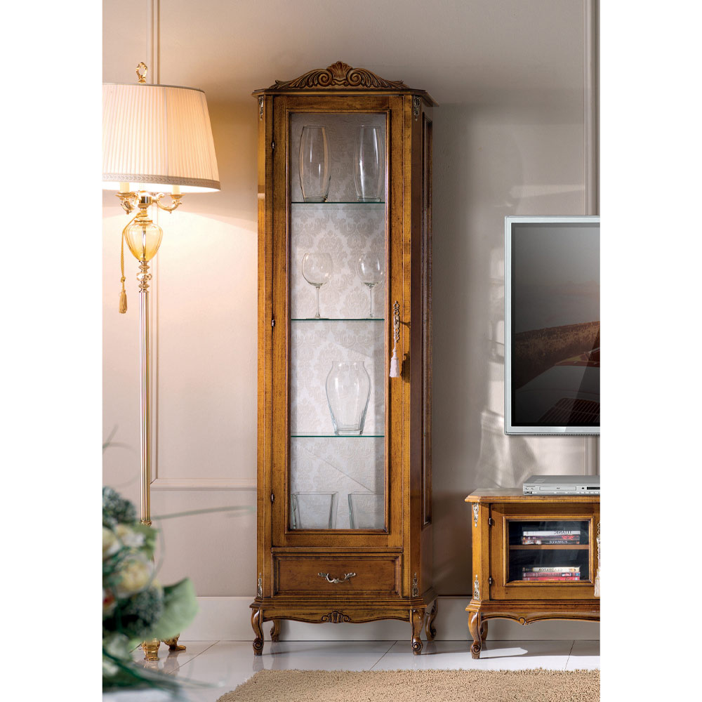 Vitrina de salón clásica en madera de nogal con 1 puerta Made in Italy.