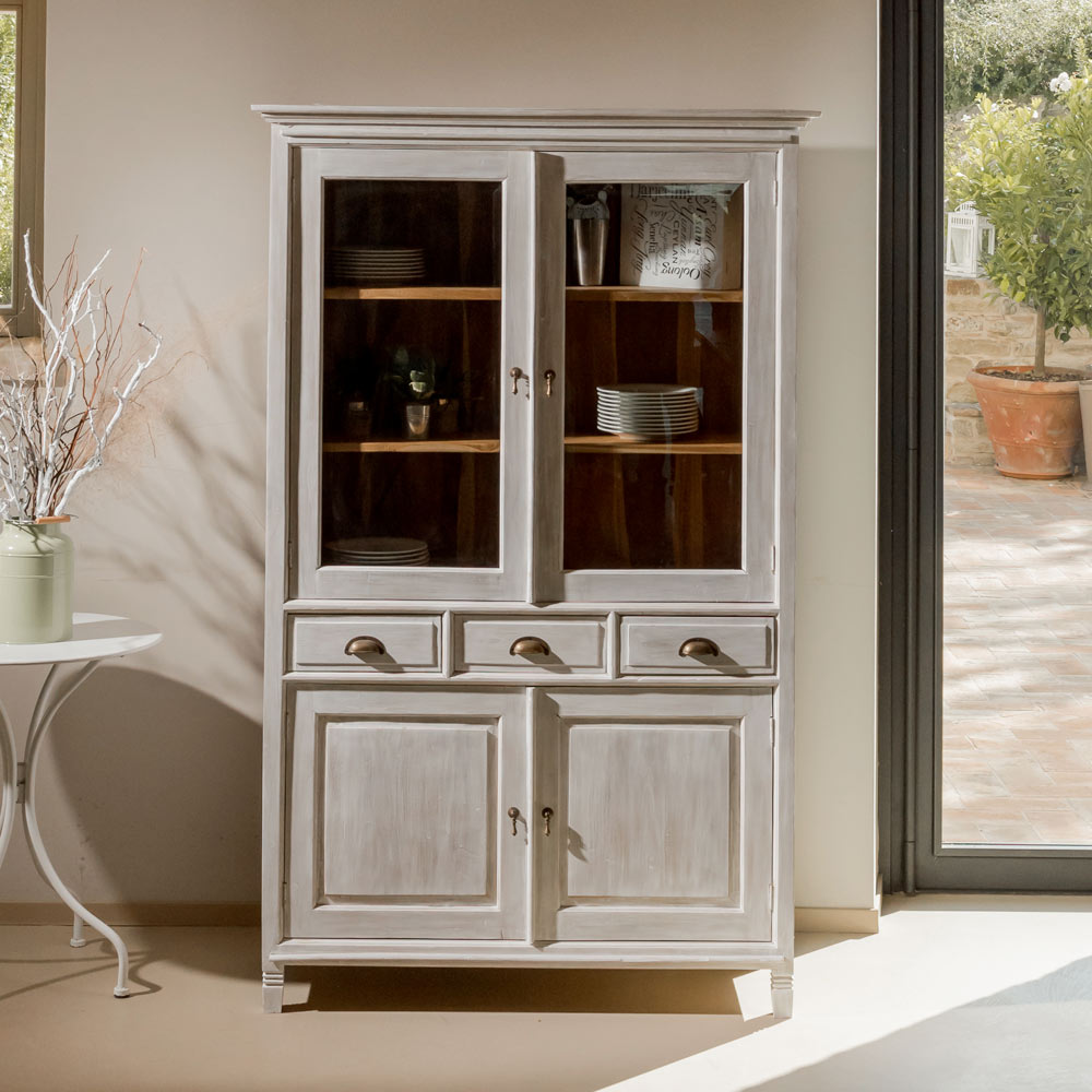 Perfecta para exhibir vajilla, objetos decorativos o colecciones, esta vitrina ofrece espacio de almacenamiento y una elegante solución de exhibición, manteniendo el orden y la armonía visual.