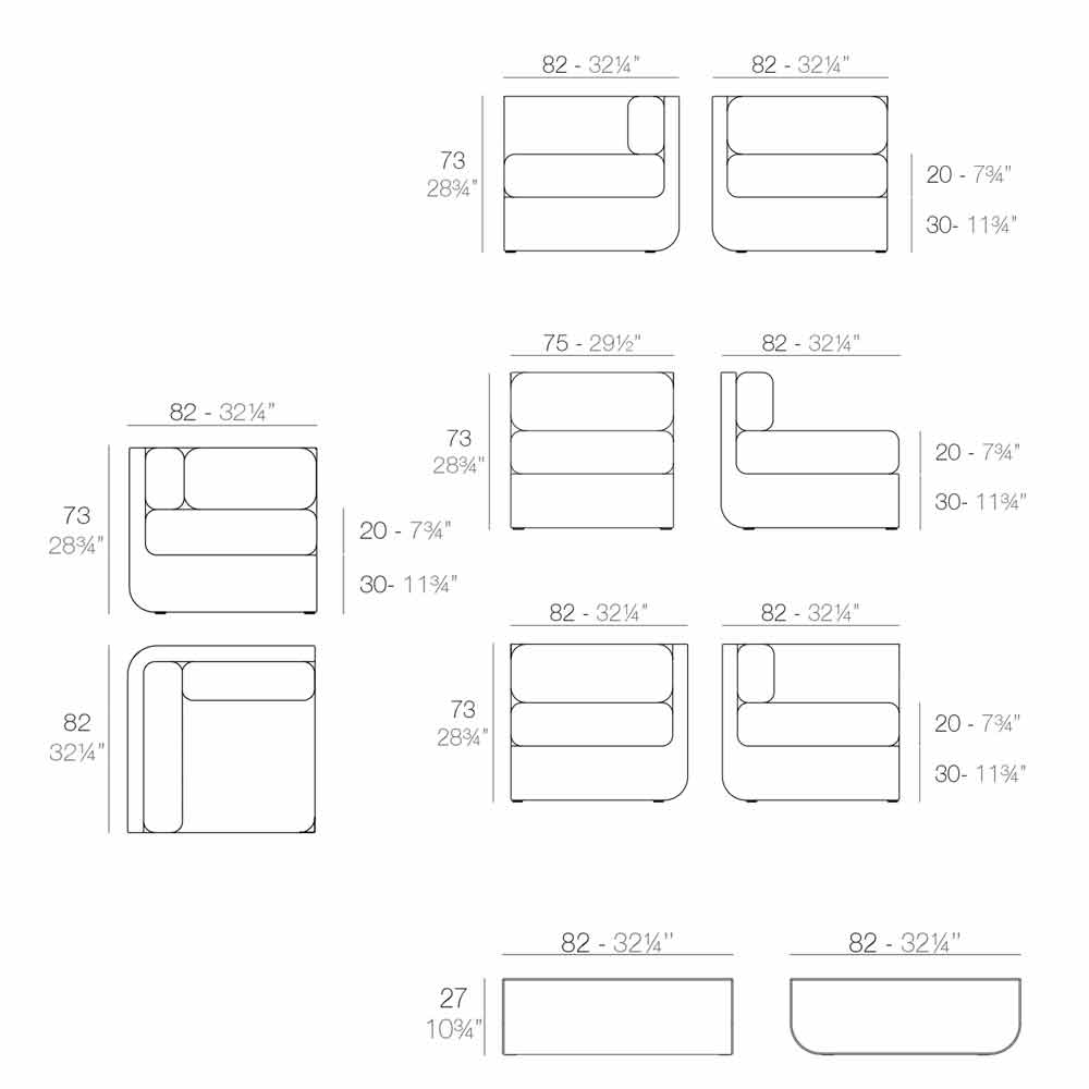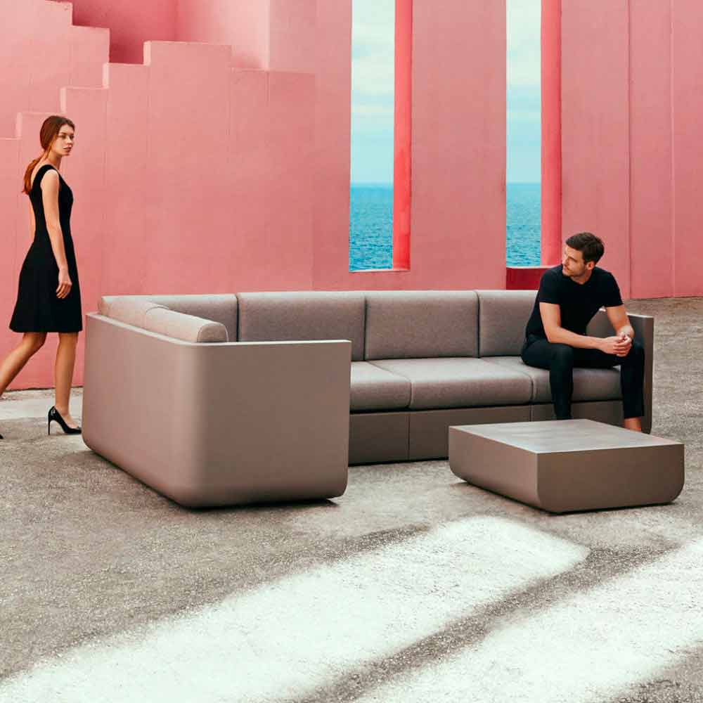 Vondom Ulm composition taupe design garden lounge Ulm by Vondom salón de jardín hecho de polietileno por un molde giratorio de doble pared. 100% reciclable Taupe. Compuesto de: - 1 módulo izquierdo L81.5 x P81.5 x H72 cm; - 2 módulos centrales de L82 x P75 x H72 cm cada uno; - 1 módulo de esquina L81.5 x P81.5 x H72 cm; - 1 módulo derecho L81,5 x P81,5 x H72 cm; - 1 mesa L82 x P82 x H27 cm color topo.