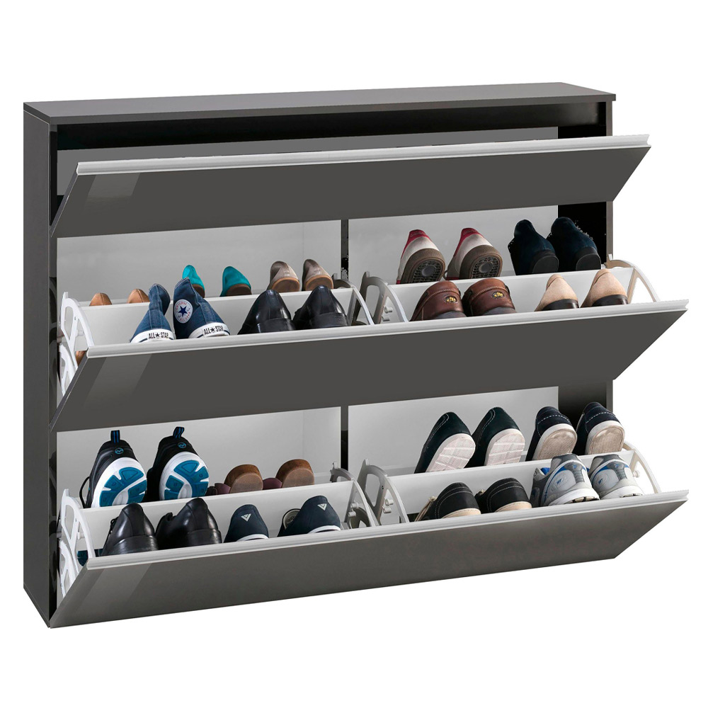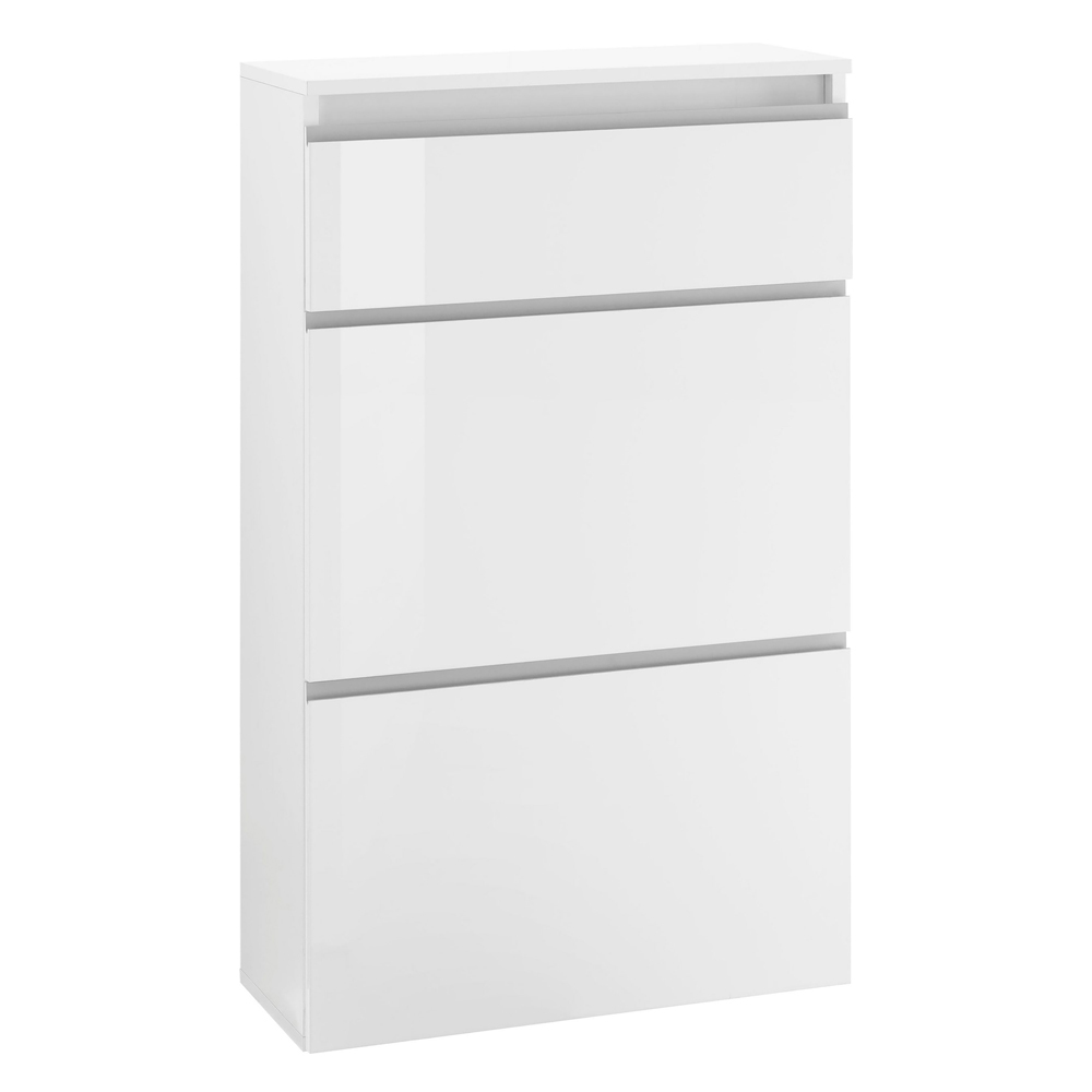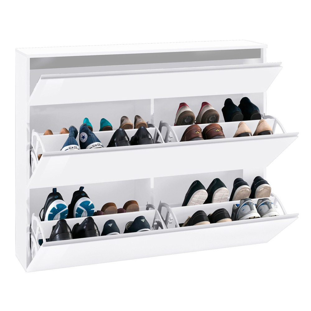 Zapatero de diseño Made in Italy con 3 puertas en madera blanca brillante o pizarra.