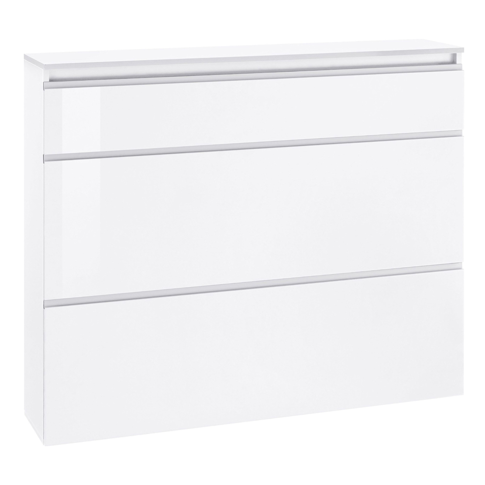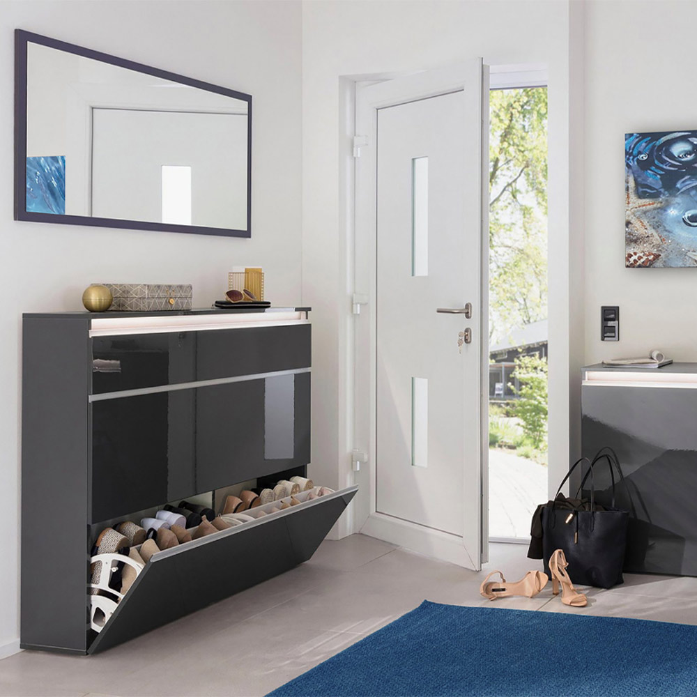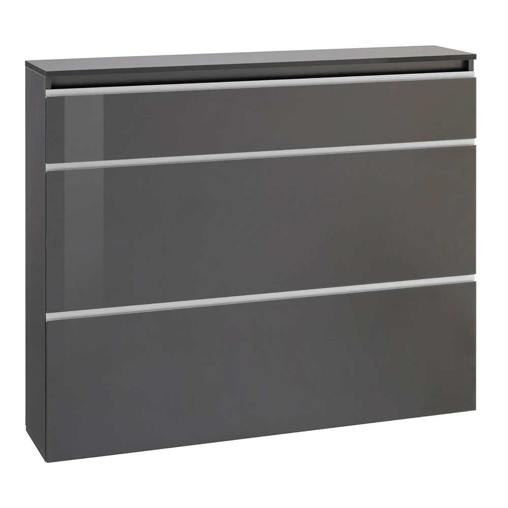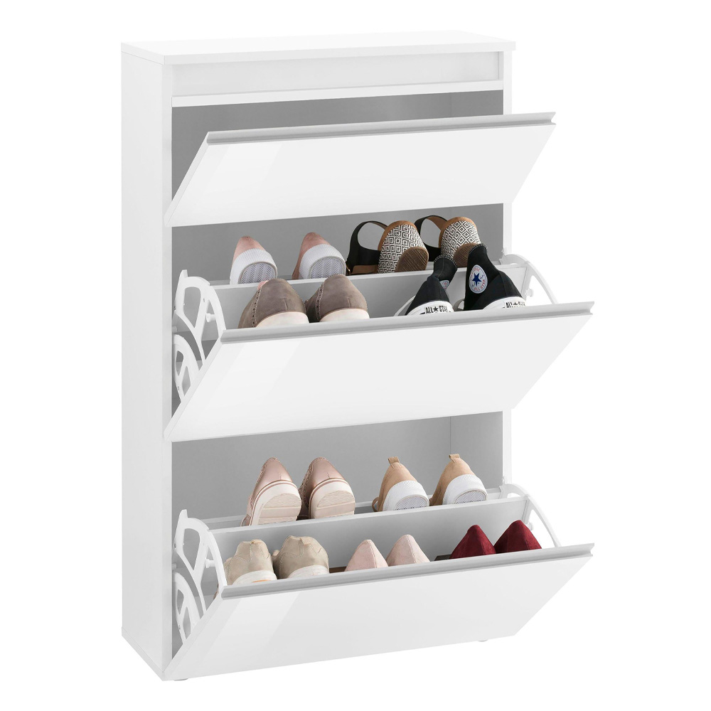 Zapatero de diseño Made in Italy con 3 puertas en madera blanca brillante o pizarra.