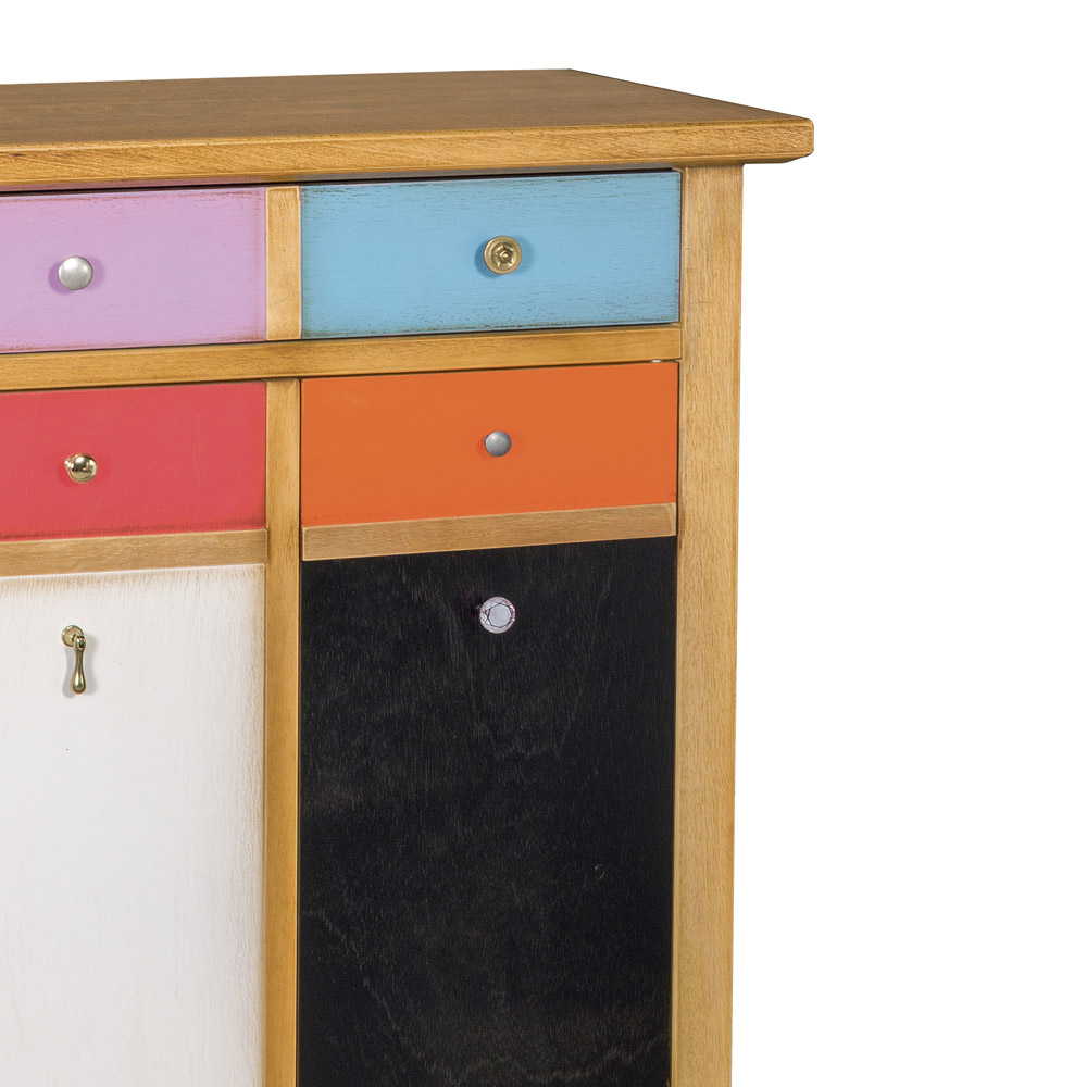 Alegría y alegría son las características que describen este elemento con colores fuertes y brillantes y las formas particulares de los mangos. Una original reinterpretación de un mueble de gran funcionalidad y capacidad , útil en cualquier ambiente de vida para guardar y organizar zapatos y objetos, sin dejarlos tirados por la habitación.