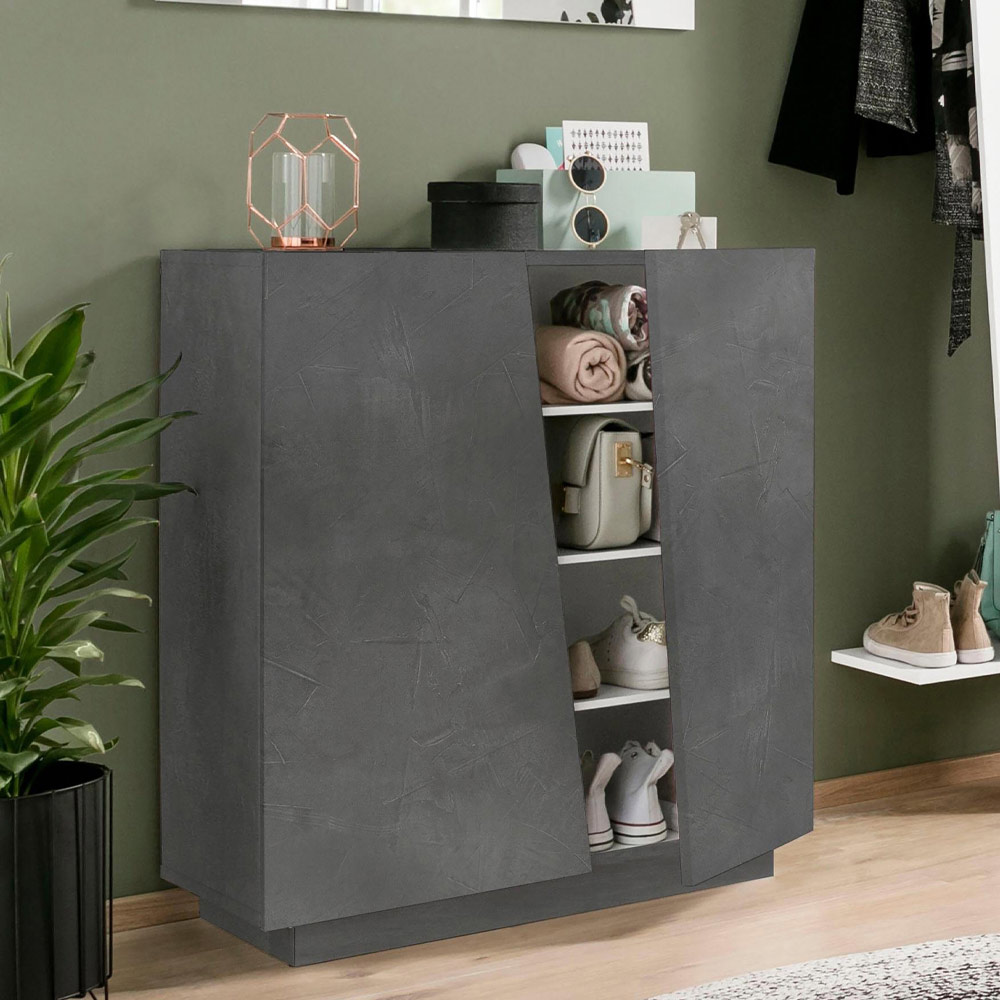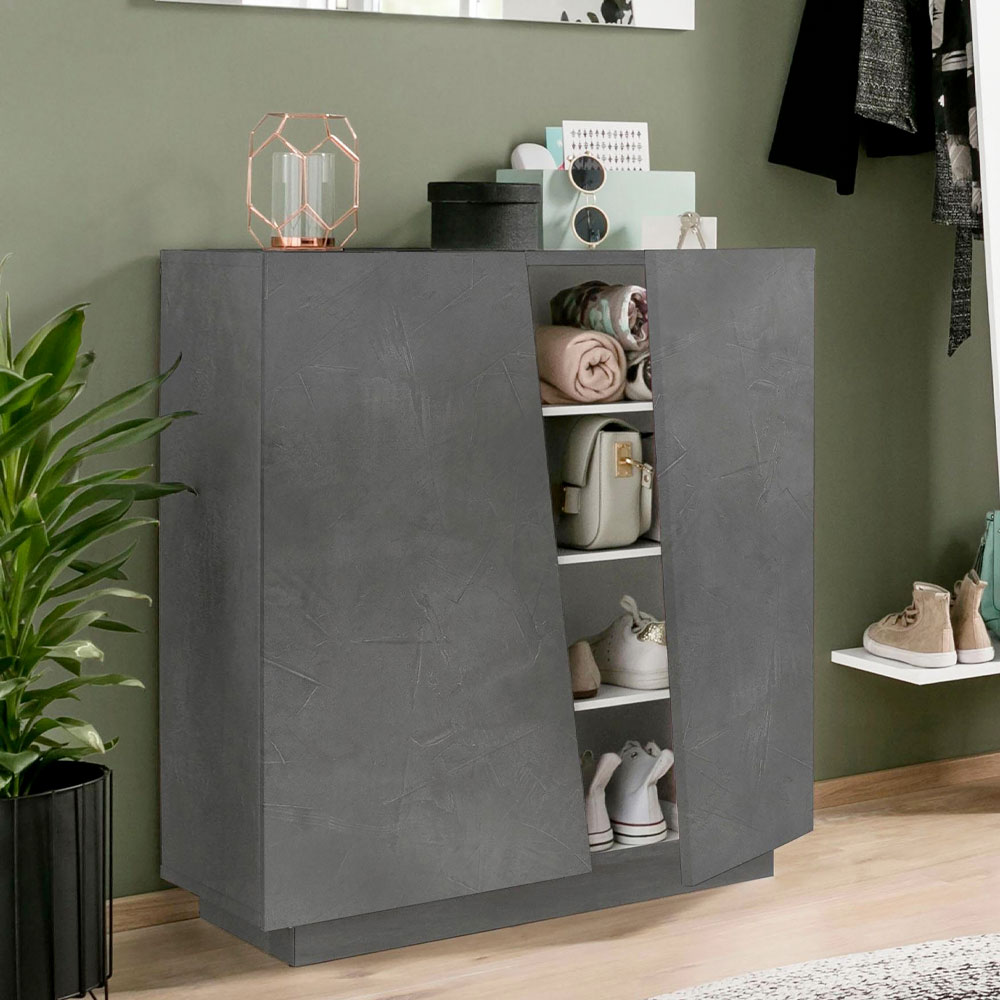Zapatero en madera de melamina sostenible con 2 puertas y 2 acabados, made in Italy.