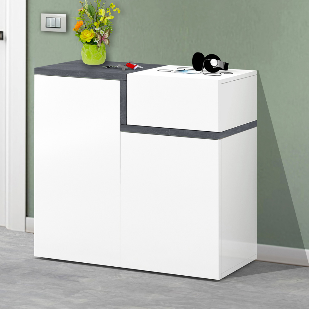 Zapatero de entrada en madera blanca y arce o pizarra, 3 o 4 puertas made in Italy.