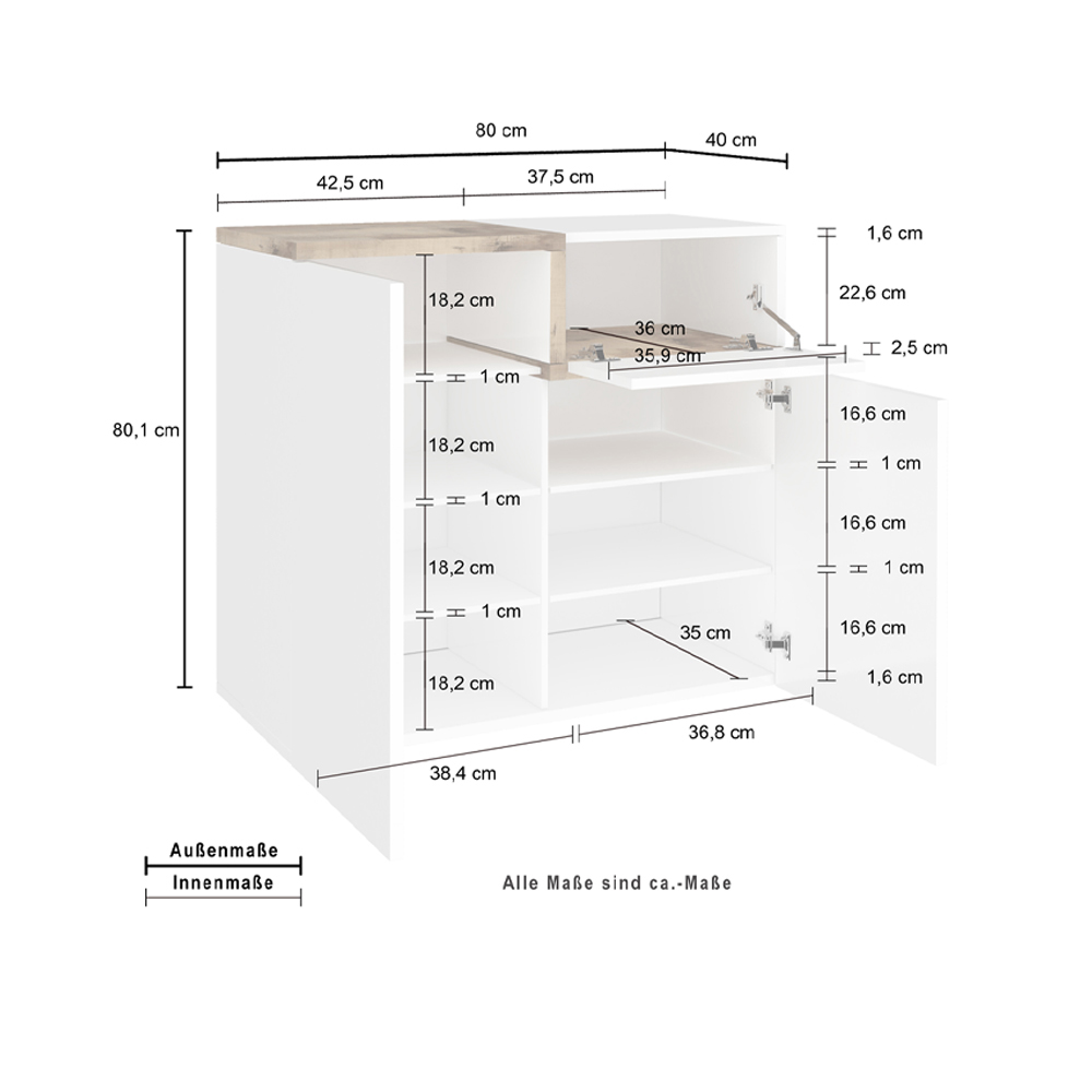 longitud 80 cm - 2 puertas batientes + 1 solapa (alrededor de 14 zapatos)