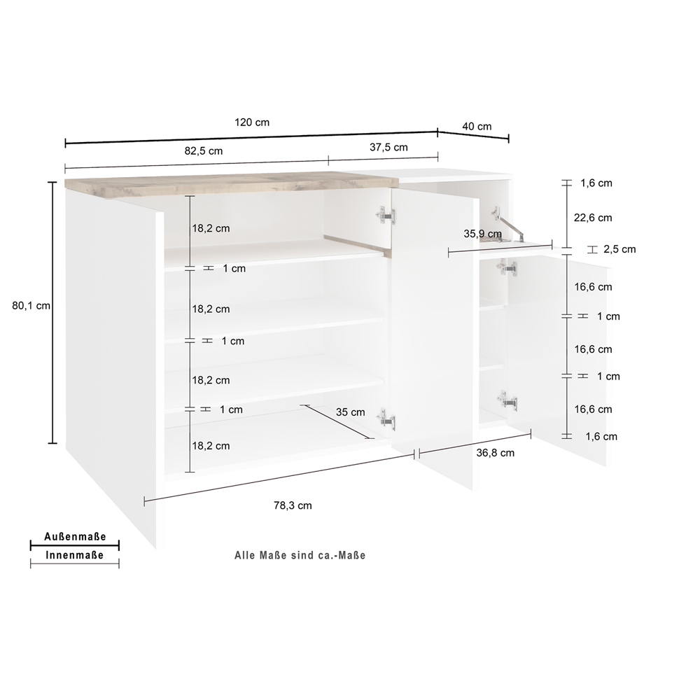 longitud 120 cm - 3 puertas batientes + 1 solapa (unos 22 zapatos)