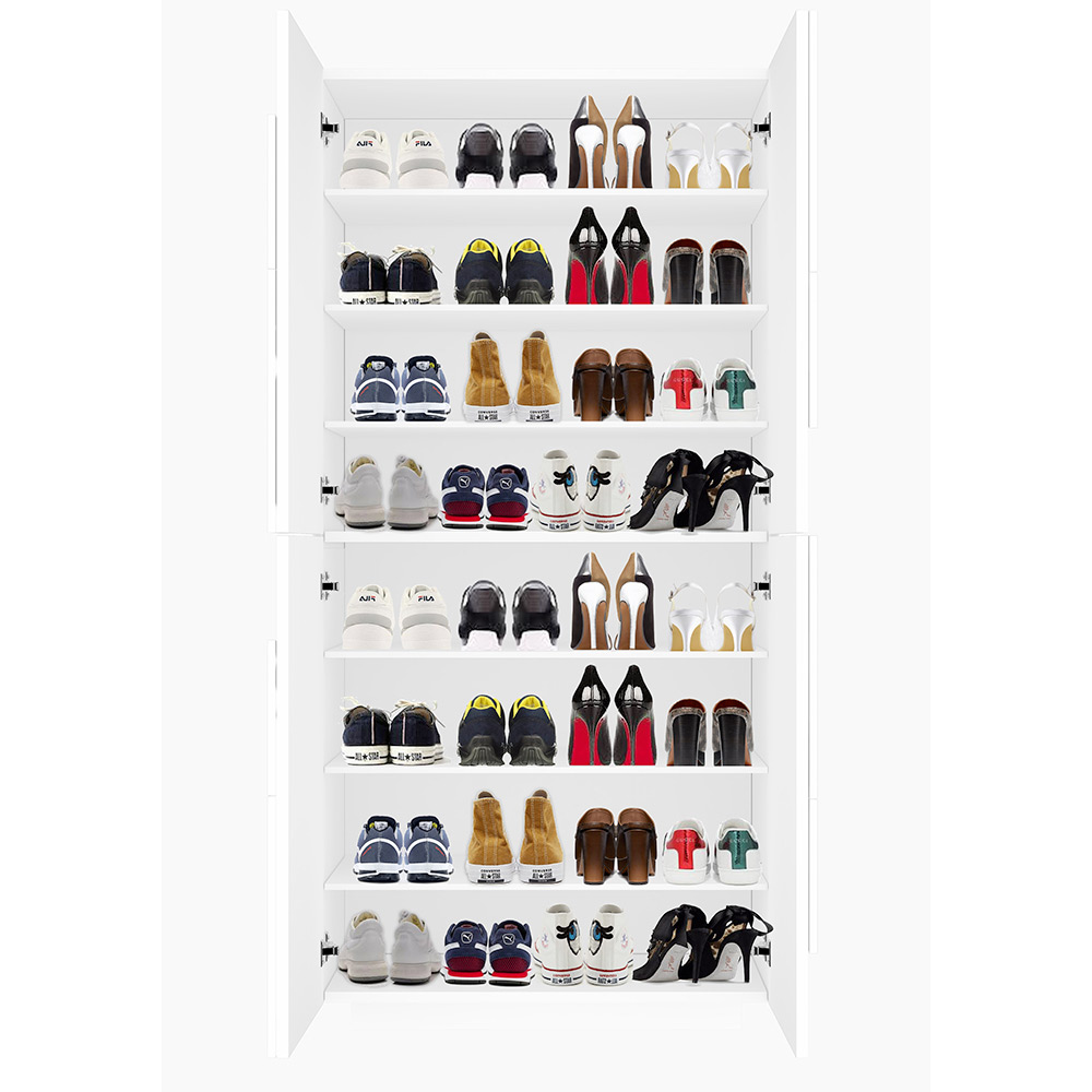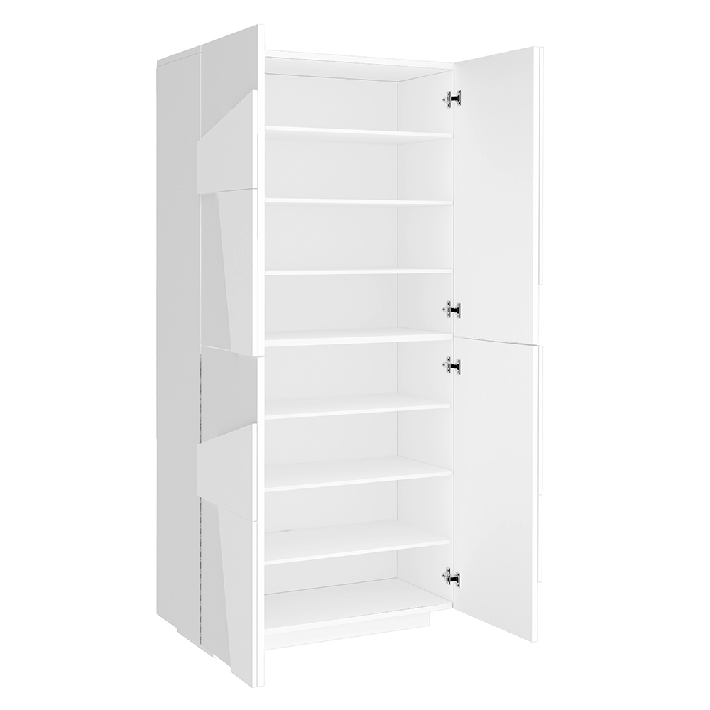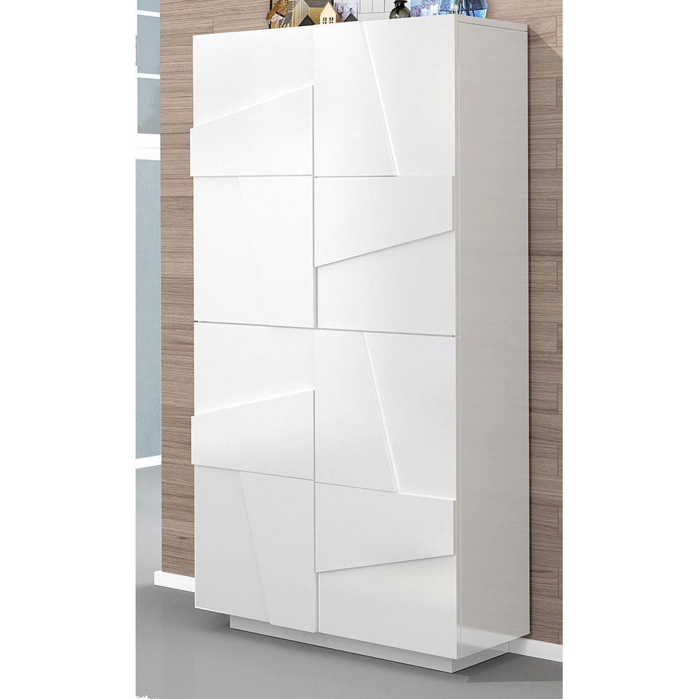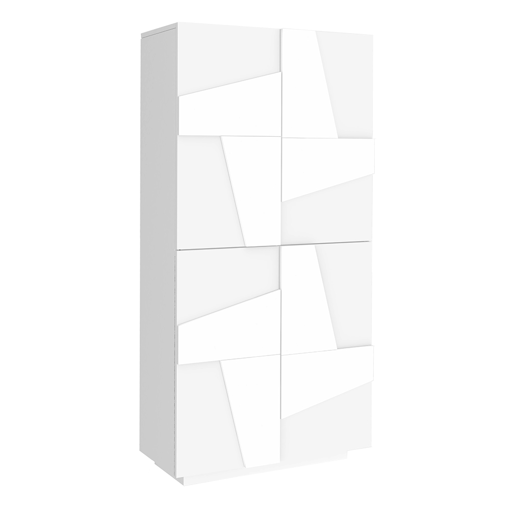 El zapatero se compone de 4 puertas batientes especiales por la talla geométrica en relieve en la superficie, que cierran 8 compartimentos contenedores , que garantizan un gran espacio de almacenamiento. Está fabricado en melamina y es 100% Made in Italy . Este producto se presta para completar la decoración de cualquier estancia gracias a sus acabados sencillos y elegantes que aportan al ambiente un toque único e inolvidable. El material utilizado garantiza calidad y resistencia incluso en el tiempo.